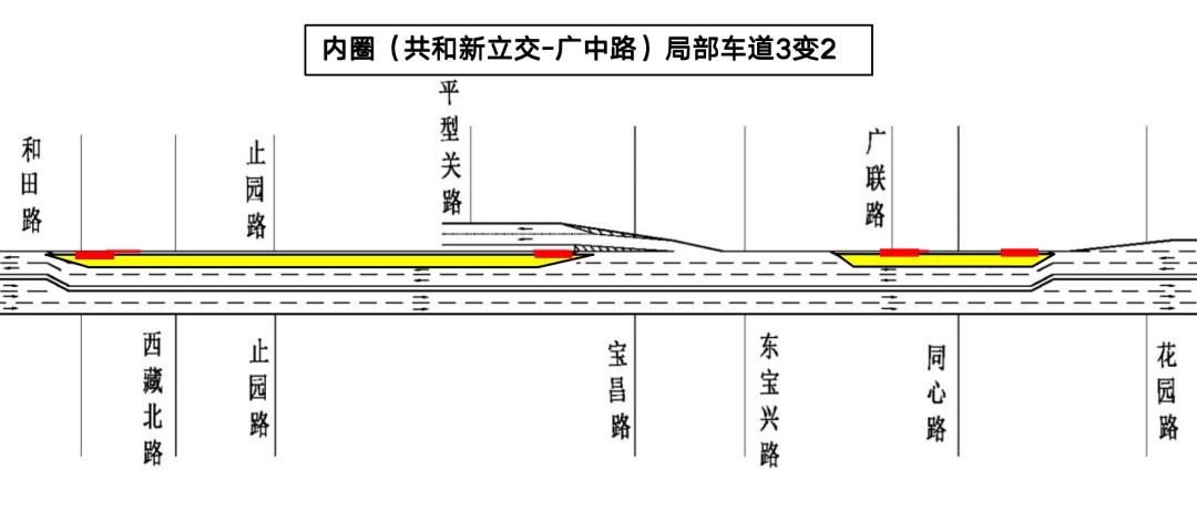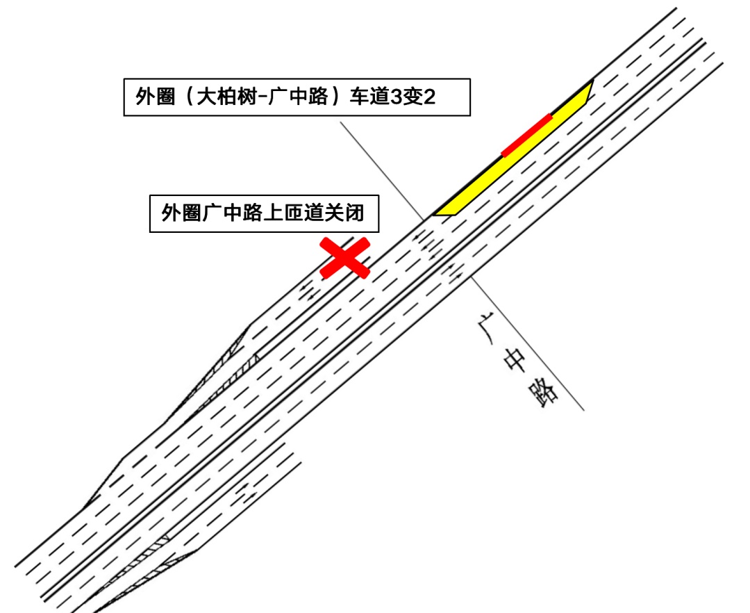 此外,10月2日、3日、4日计划进行边梁更换施工。届时,10月3日、4日日间将局部占用内环高架(共和新立交-广中路)外圈主线最右侧1根车道,确保高架主线双向4车道正常通行,外圈广中路上匝道临时关闭。