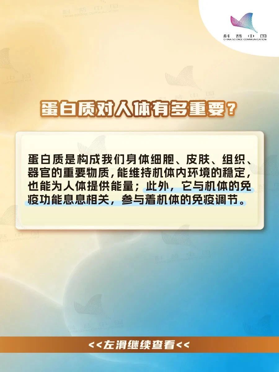 蛋白质是构成我们身体细胞、皮肤、组织、器官的重要物质,能维持机体内环境的稳定,也能为人体提供能量;此外它与机体的免疫功能息息相关,参与着机体的免疫调节。