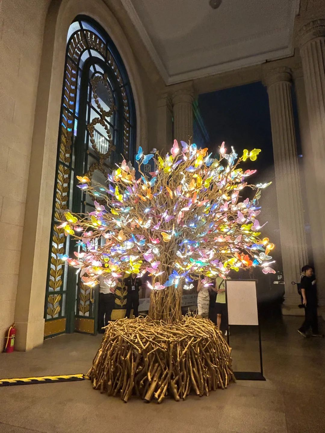 西一馆一楼入口处的《光溢蝶舞》由青浦区选送,作品是由成群绚烂蝴蝶构成的“时间之树”,它融合了时间、生命、成长等多重寓意,展现青浦区“五千里水路六千年文化”所积淀的深厚文化底蕴和生态优势汇聚的璀璨华光,更是青浦新城“高颜值、最江南、创新核、温暖家”的梦想活力和幸福画卷。