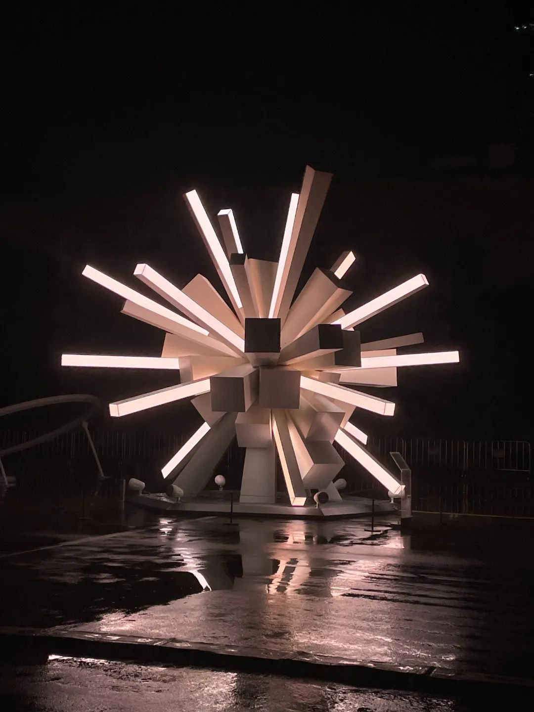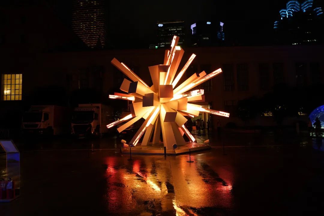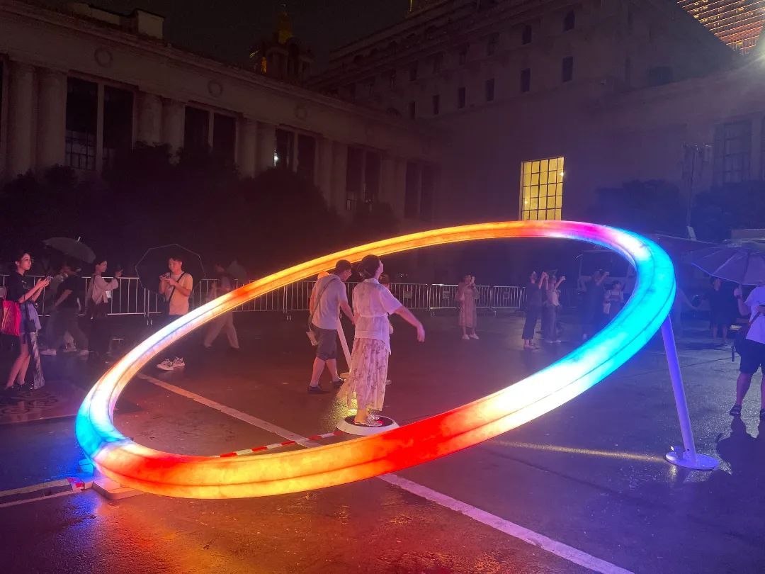虹口区选送的《日光之环》装置的设计灵感来源于太阳对地球的深远影响,以及它在一天之中色彩和位置的微妙变化。23.27°是黄道面与赤道面的夹角,通过试图捕捉太阳的精髓,将其转化为一种沉浸式的体验。太阳为世间万物提供了繁衍生息的能量,赋予世间万物色彩,感染着每一个人。艺术家以装置为媒介,旨在唤起人们对这一非视觉影响的认识,重新审视日光在我们生活中的重要角色。它邀请每一位观众走进一个光影交织的世界。