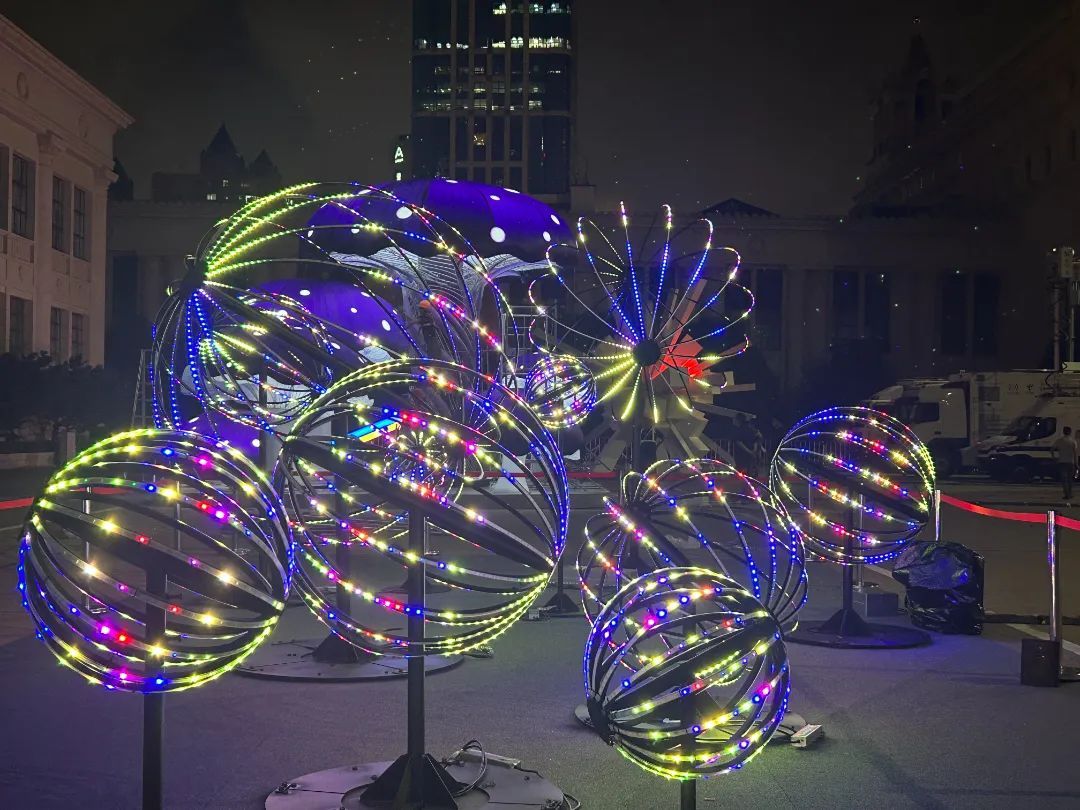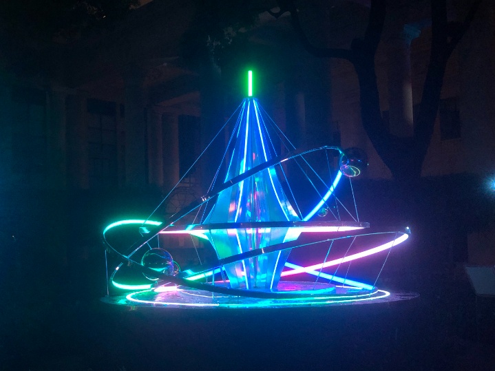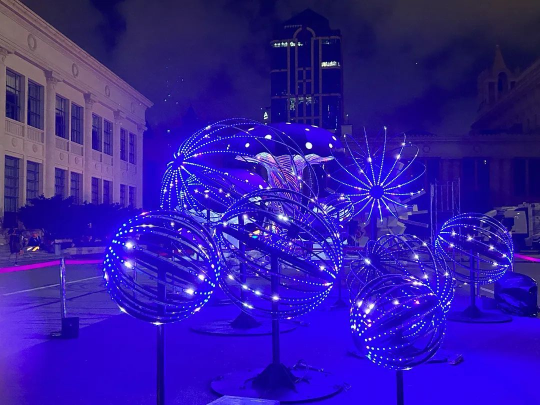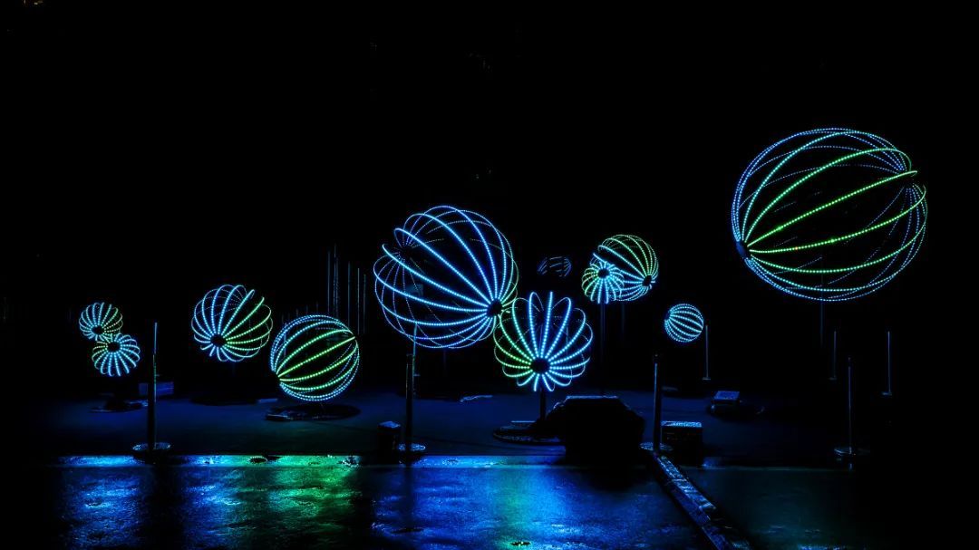 以“时空未来”为主题的光影艺术装置展共展出12项户内外装置作品。作品由国际方案征集入围和各区选送组成,使用高效节能光源以及环保、可循环材料,呈现了丰富的光影艺术内容。