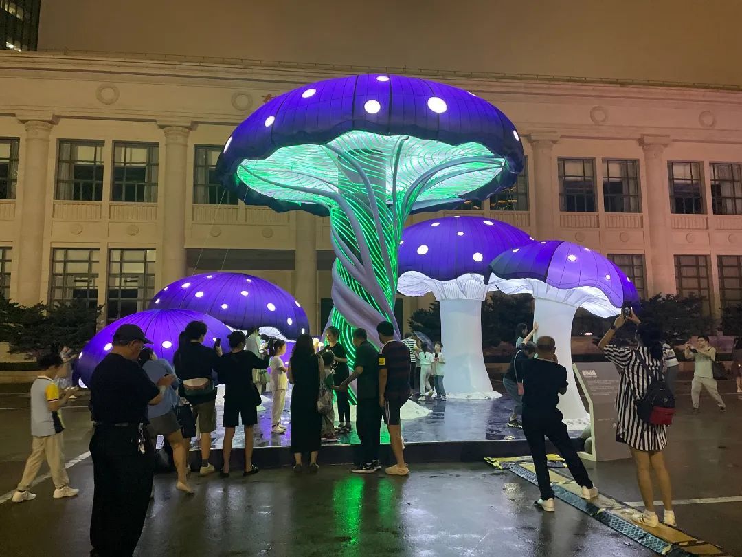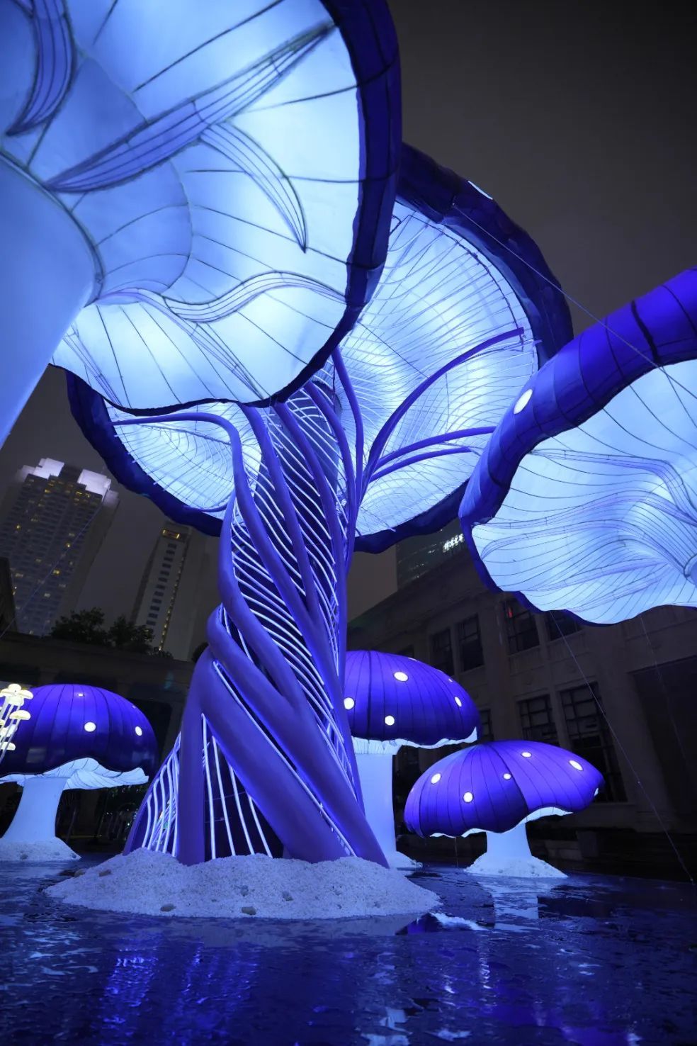 黄浦区选送的《蘑菇丛林》艺术装置以《山海经》为创作灵感,将中国传统彩灯技艺与现代艺术、光影技术相结合,创造出独特的光影艺术作品,为大家带来沉浸式光影艺术体验。《山海经》中记载了一个小人国,它们微不足道,却乐天从容,这个灯彩装置邀请大家以微观视角步入蘑菇丛林,与弱小生命共振,感受万物的美好、众生的奇妙。此作品将是2025年豫园新春灯会的精华场景之一。