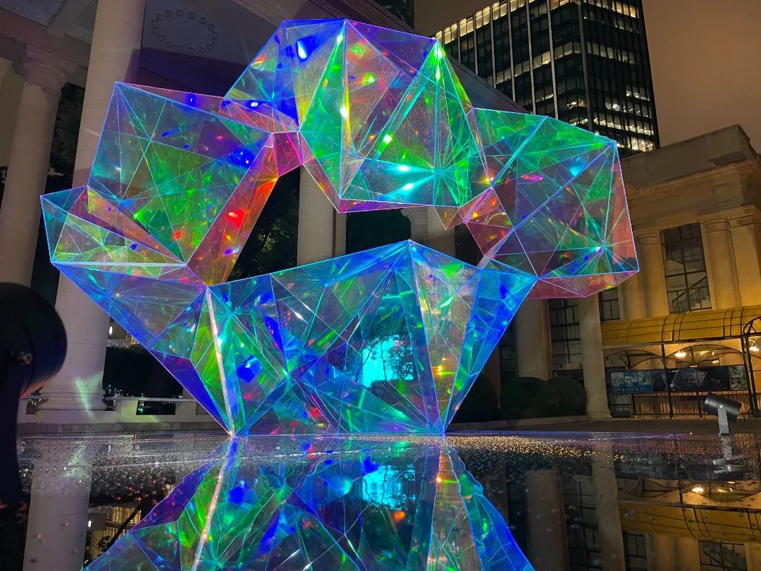 长宁区选送的《璀璨之城》装置由中法艺术家联手打造,它巧妙地融合了“碳”与“钻石”的元素,以此向《巴黎气候协定》的全球愿景致敬。这件作品深刻地揭示了碳不仅是构成钻石的基础,也是维系生命的关键元素,映射出自然界中生命的细腻与物质的坚毅。作品融合长宁的城市版图灵感,创造出光影交错的璀璨效果。钻石,这一在地球深度极端条件下孕育出的碳的晶体形态,以其无与伦比的硬度,成为了坚韧与恒久的象征。在“璀璨之城”中,钻石的这一特质被赋予了新的意义——它不仅代表着自然界的顽强生命力,也象征着全人类在面对气候变化这一全球性挑战时所展现出的坚定意志和集体智慧,激发了人们对可持续发展和生态保护的深刻认识,以及对一个更加绿色、可持续未来的向往和追求。