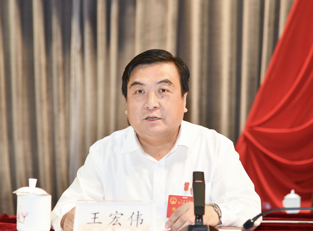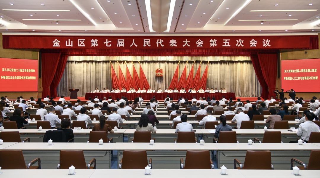 9月24日下午,金山区第七届人民代表大会第五次会议在区会议中心开幕。 大会第一次全体会议执行主席刘健、王宏伟、周俭、蒋雅红、潘军、陈莽、余雷、黄永辉、胡国强、周弟、张军、屠伟忠、沈臻峰和大会主席团成员在主席台就座。 大会应到代表242名,实到213名,符合法定人数。 下午3时30分,王宏伟主持大会第一次全体会议并宣布会议开幕。会上表决大会补选和通过办法(草案)。 区领导李泽龙、沈永兵等出席开幕会并在主席台就座。