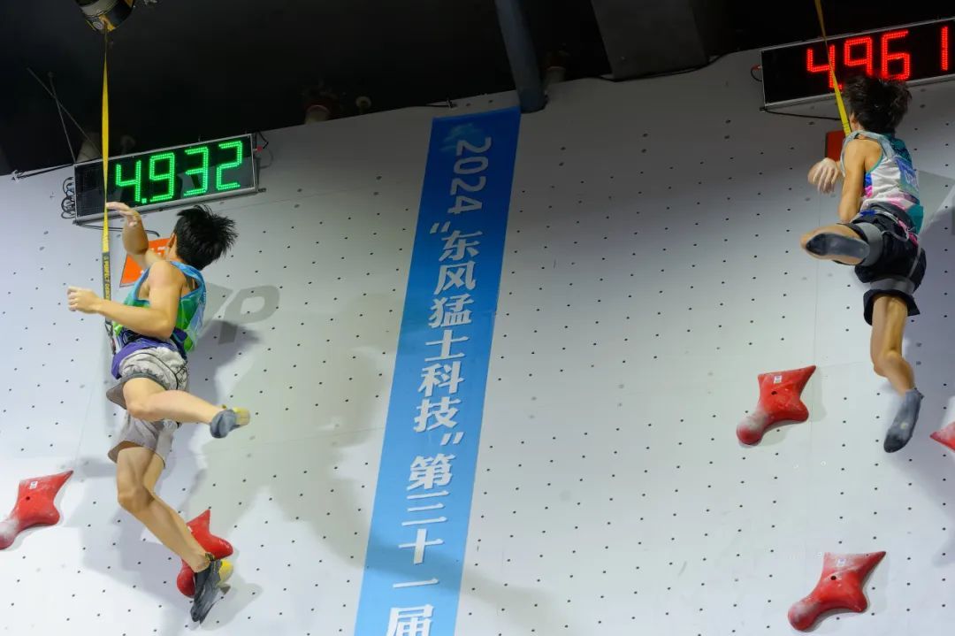 9月21日~24日,第三十一届全国攀岩锦标赛暨第十五届全国运动会攀岩项目资格赛在湖北省奥林匹克体育中心举行。年仅15岁的奉贤小将赵一程代表上海队参赛,是男子、女子共32位晋级决赛的选手中年龄最小的。 赵一程一路过五关斩六将,在9月23日的大决赛中,对阵17岁的湖南选手储守宏,以4.93秒、领先对手0.03秒的成绩夺得男子速度赛冠军!4.93秒是本次比赛中的全场最好成绩,也是他在比赛中的最好成绩,祝贺他! 冠军档案 赵一程,2009年出生,2023年由上海市登山户外运动协会和奉贤区体育局共同引进培养,现就读于奉贤中学。曾获得2023年及2024年世界青年攀岩锦标赛U16组男子速度赛冠军、中华人民共和国第一届学生青年运动会公开组速度赛冠军、第三十一届全国攀岩锦标赛男子速度赛冠军。 据悉,全国攀岩锦标赛是是国内创办最早、水平最高的攀岩赛事,本届比赛汇聚了国内14岁及以上的顶尖速度攀岩运动员,包括周娅菲、龙金宝、伍鹏等3位奥运选手,世青赛、中攀联赛冠军,以及各省区市的优秀运动员,是国内速度攀岩的一次大比武、大练兵。