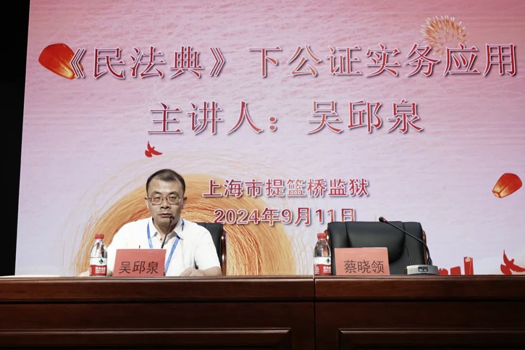 为了帮助全监服刑罪犯树立崇法、学法、懂法、守法的意识,为回归后成为守法公民打下基础。监狱邀请静安区法治讲师团进行巡讲。市北公证处的吴邱泉老师,就“《民法典》下公证实务应用”主题进行授课。并对婚姻财产分割、遗产继承等服刑罪犯可能遇到涉及法律公证的问题进行详细讲解。