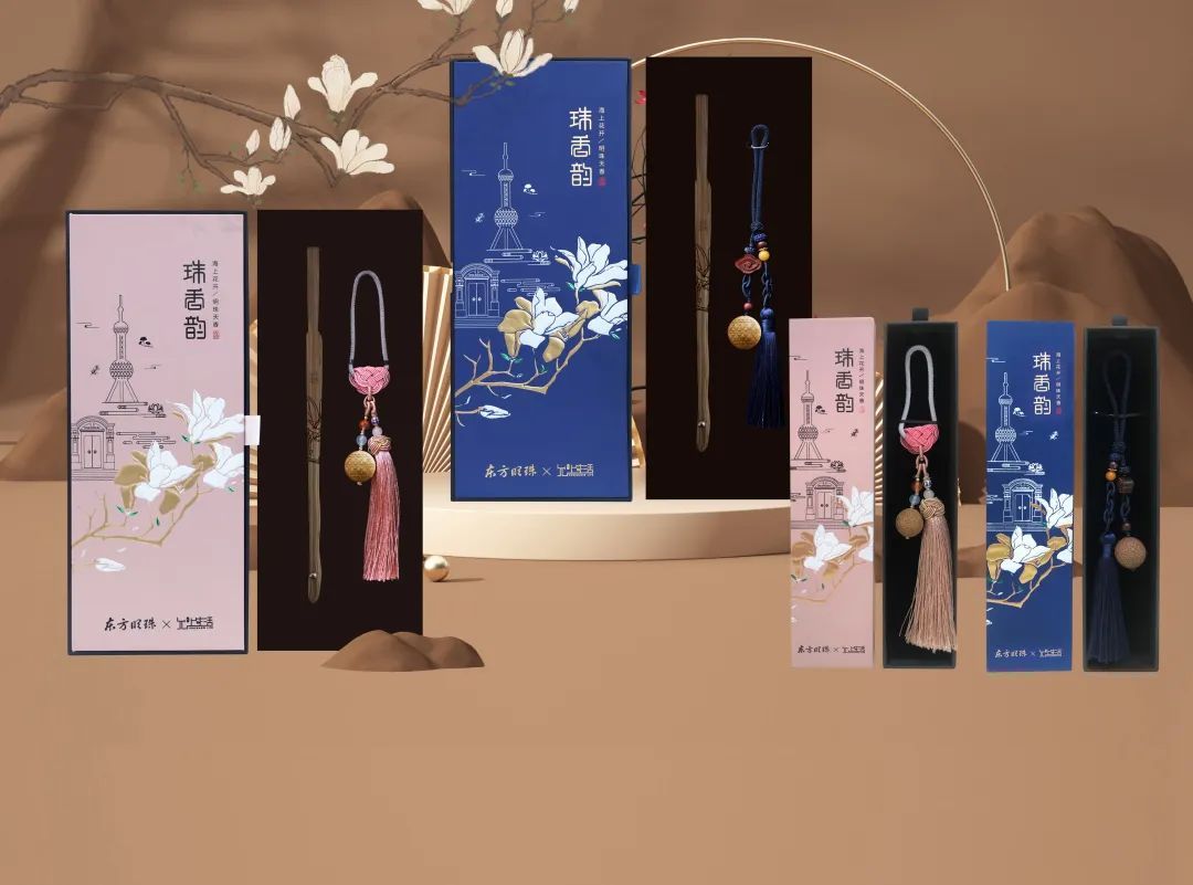 另外,由上海东方明珠广播电视塔有限公司出品的两件“上海礼物”——珠香韵礼盒和明珠天香·合香珠坠链礼盒,也是上海雷允上药业西区有限公司旗下文创自主品牌“允上生活”与东方明珠合作研发的联名款。