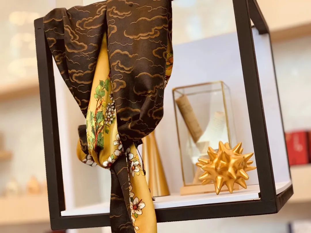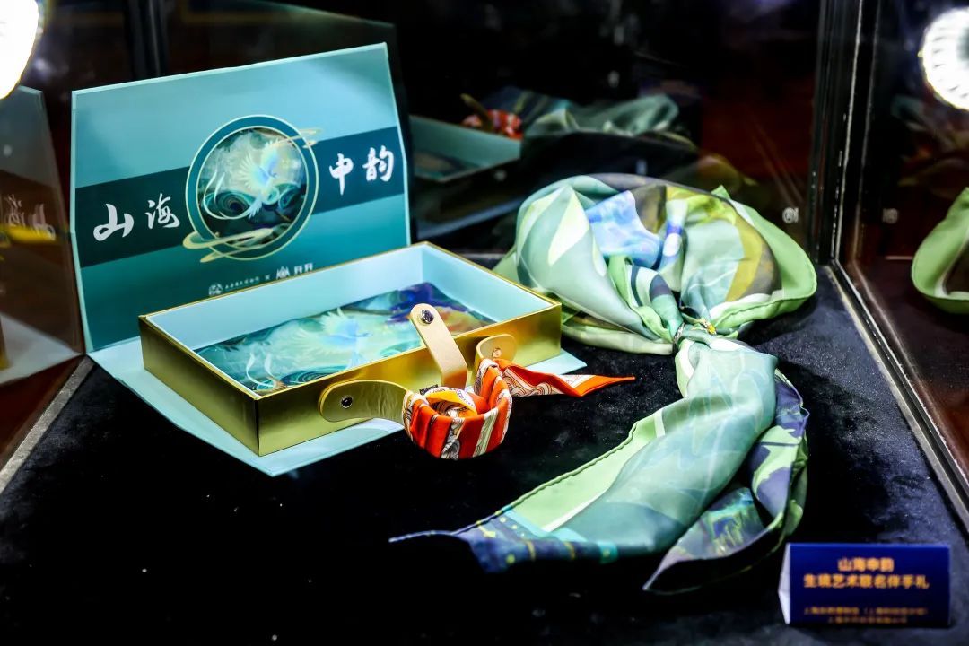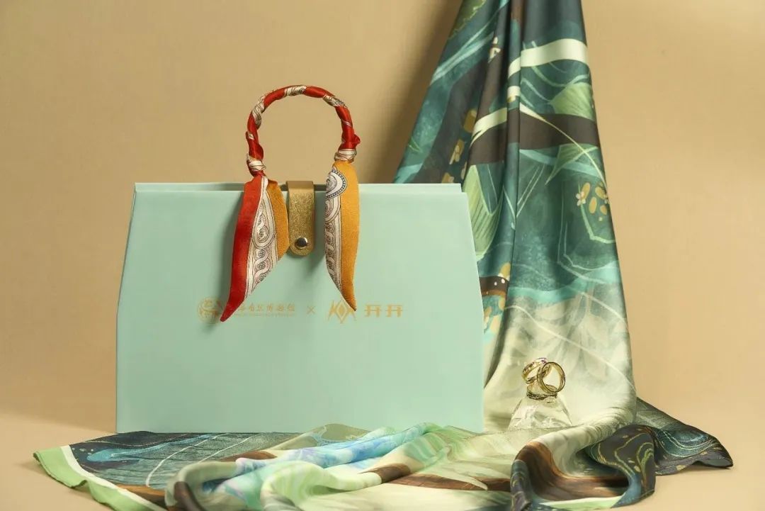 上海开开百货有限公司与上海自然博物馆联名推出的山海申韵——生境艺术联名伴手礼,是一款丝巾和丝巾扣的组合套装。整个套装大胆融合了根据《山海经》奇幻元素设计的生境复原画和海派文化的多元特性,既具有传统文化韵味又符合现代时尚审美,让传统文化在日常生活中焕发新生。它不仅是一份礼物,更是一段连接山海奇幻与海派风情的奇妙旅程,带着无尽的遐想与憧憬,绽放在每一个邂逅它的人心中。