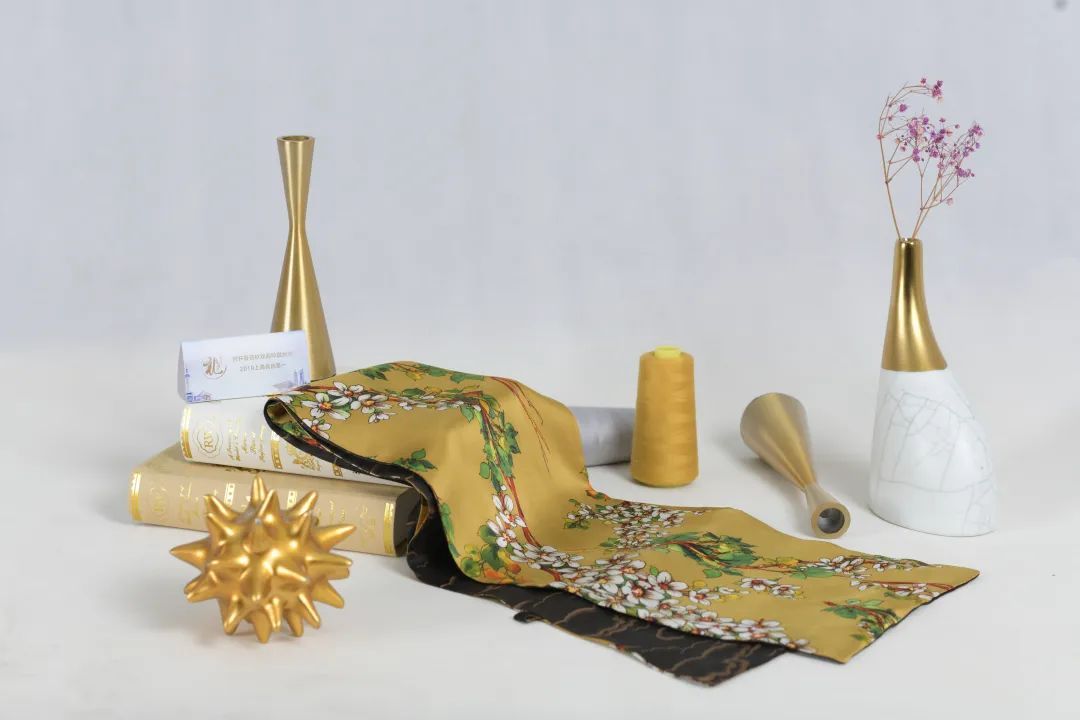 “香云”与“祥云”读音相似,寓意吉祥如意。顾名思义,“双面玲珑”香云纱丝巾有两面,一面采用深沉优雅的香云纱,另一面采用鲜艳亮丽的桑蚕丝,手感色泽俱佳,且轻灵飘动不易折皱。双面设计,不仅让丝巾的颜色变得明快鲜亮,还通过双面穿戴的方式让一条丝巾产生更多的搭配效果。