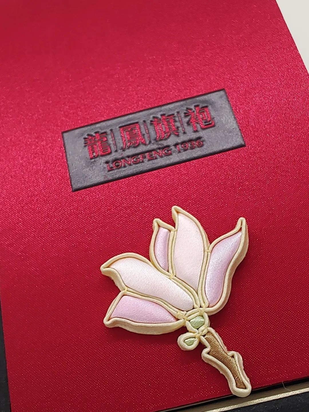 “海上花”盘扣系列运用国家级非遗项目“龙凤旗袍手工制作技艺”,经过开料、刮浆、开条、烫条、盘扎、塞芯、封烫等二十多道制作工序。