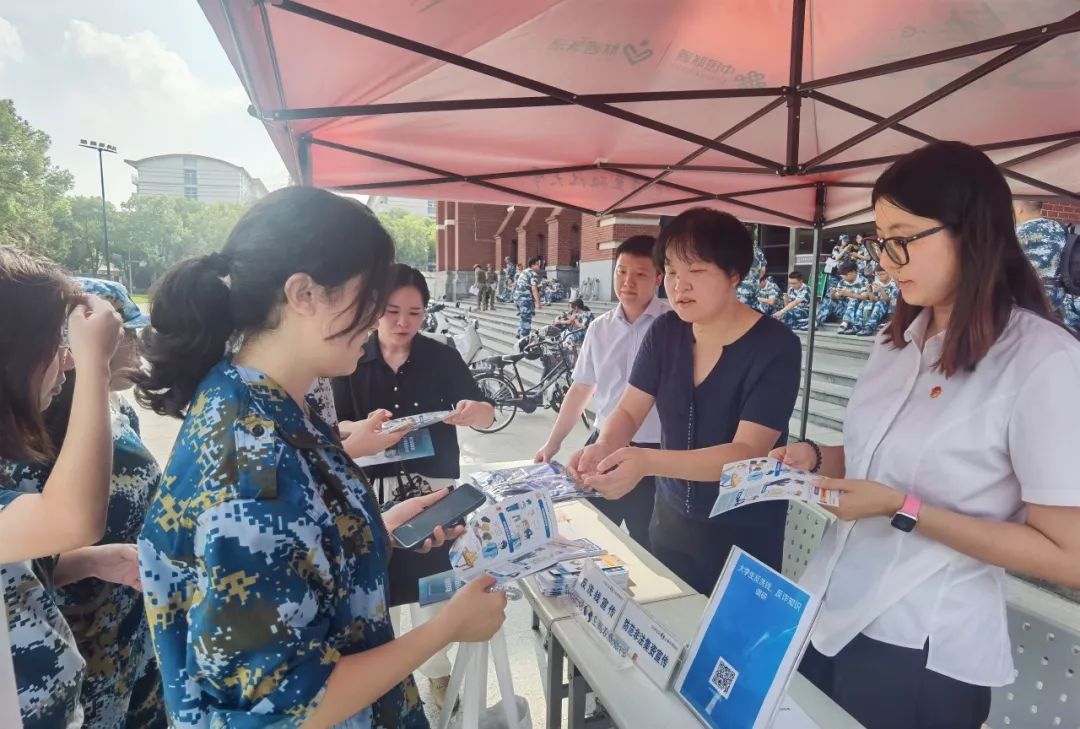 在松江,上海农商银行走进松江大学城“护航开学季,消保助你行”,同时,在新生军训间歇期间开展“金融知识赶大集”活动,为大学新生及海外留学生们普及洗钱犯罪的危害性,讲解电信网络诈骗手法及防范措施。