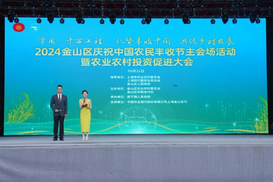 9月21日,在庆祝第七个中国农民丰收节的同时,金山举办了2024年农业农村投资促进大会,以高质量农业项目为牵引,推动国家乡村振兴示范县创建等工作落地落实,高效推进农业招商引资。来自全国各地共90家企业(合作社)、12家金融机构参加此次大会,涵盖农业生产、设施设备制造、种源研发、农产品加工、农文旅运营、冷链物流仓储和投资平台等多个领域。