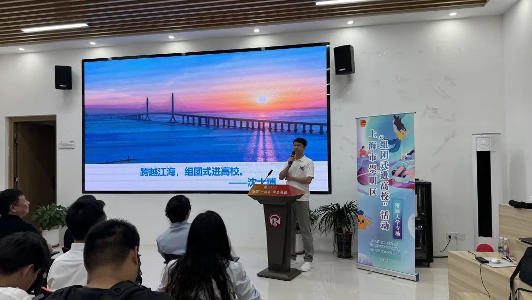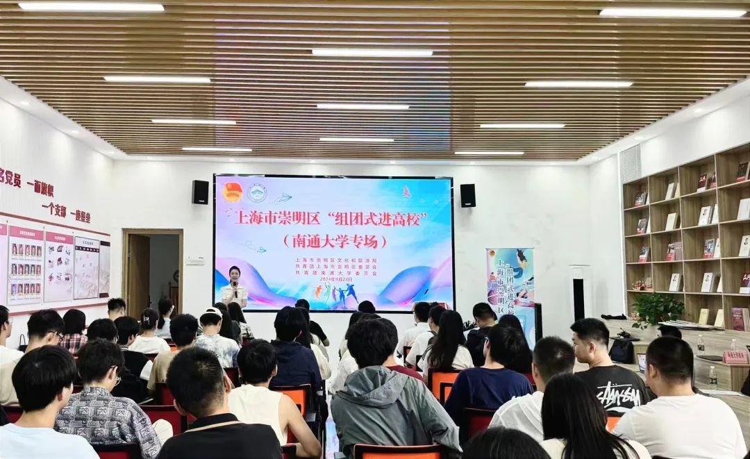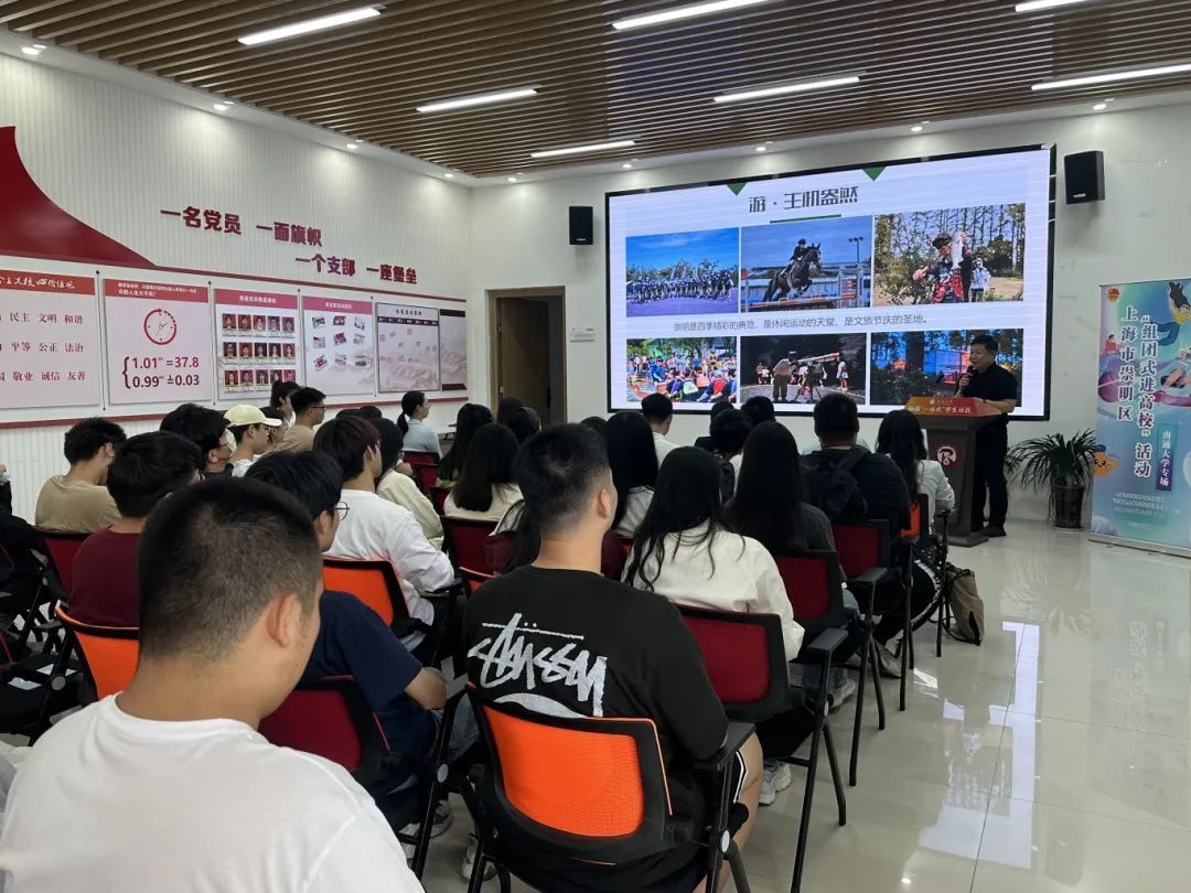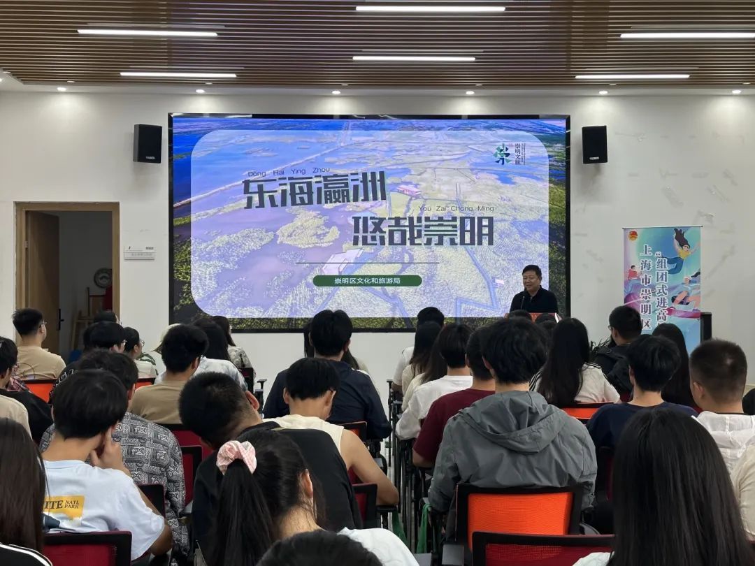 活动伊始,通过精心制作的崇明文旅宣传视频,让在场的师生仿佛置身于那片绿意盎然、生态宜居的岛屿之中。视频中,崇明的自然风光、人文底蕴、美食佳肴一一呈现,为后续的推介奠定了浓厚的情感基调。