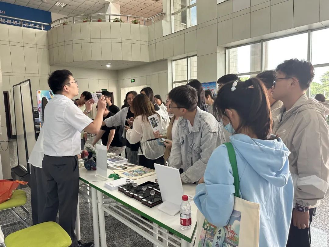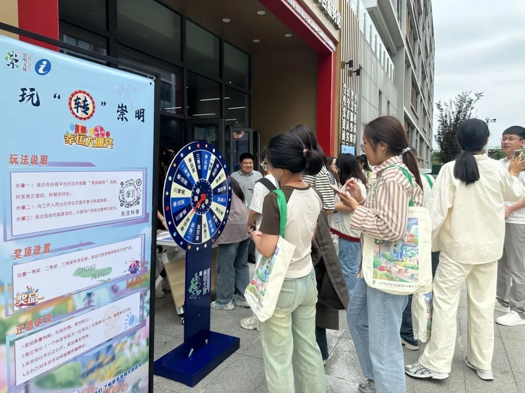 现场设立的文旅咨询服务区,为师生们提供了深入了解崇明文旅的窗口。区文旅公服中心耐心解答疑问,介绍旅游线路和优惠政策,同时鼓励大家扫码关注“悠哉崇明”抖音号或公众号,不仅拉近了与崇明文旅的距离,还能参与到趣味横生的抽奖活动中,有机会把精美的崇明文创礼品带回家,这份惊喜让现场氛围更加热烈。现场的七彩套印盖章活动,更是让师生们在互动中感受到了崇明的独特韵味和创意魅力。