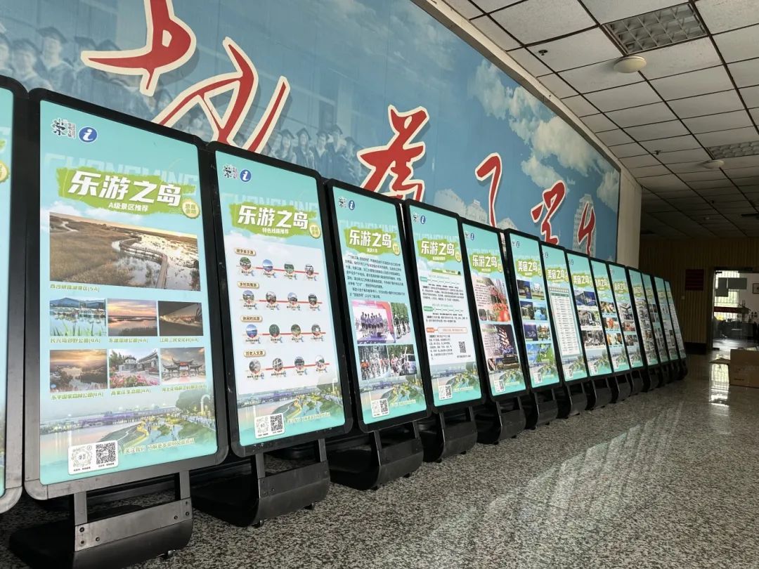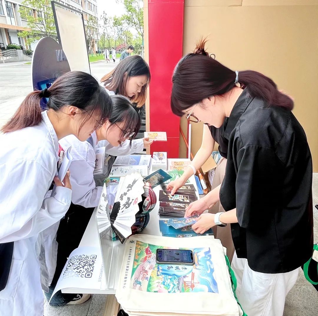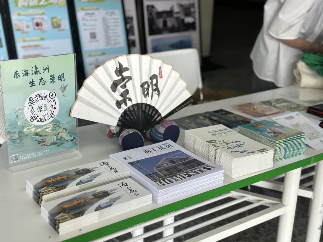 由区文旅公服中心设计制作的“乐游之岛”“食尚之岛”“美宿之岛”“休闲之岛”“智行之岛”“购物之岛”六大主题展板,如同一幅幅精美的画卷,向宾客全面展示了崇明的特色文旅资源,从鲜美可口的崇明菜到别具一格的生态民宿,从便捷的智慧旅游体验到丰富多彩的休闲娱乐活动,无不吸引着师生们的驻足观看和热烈讨论。