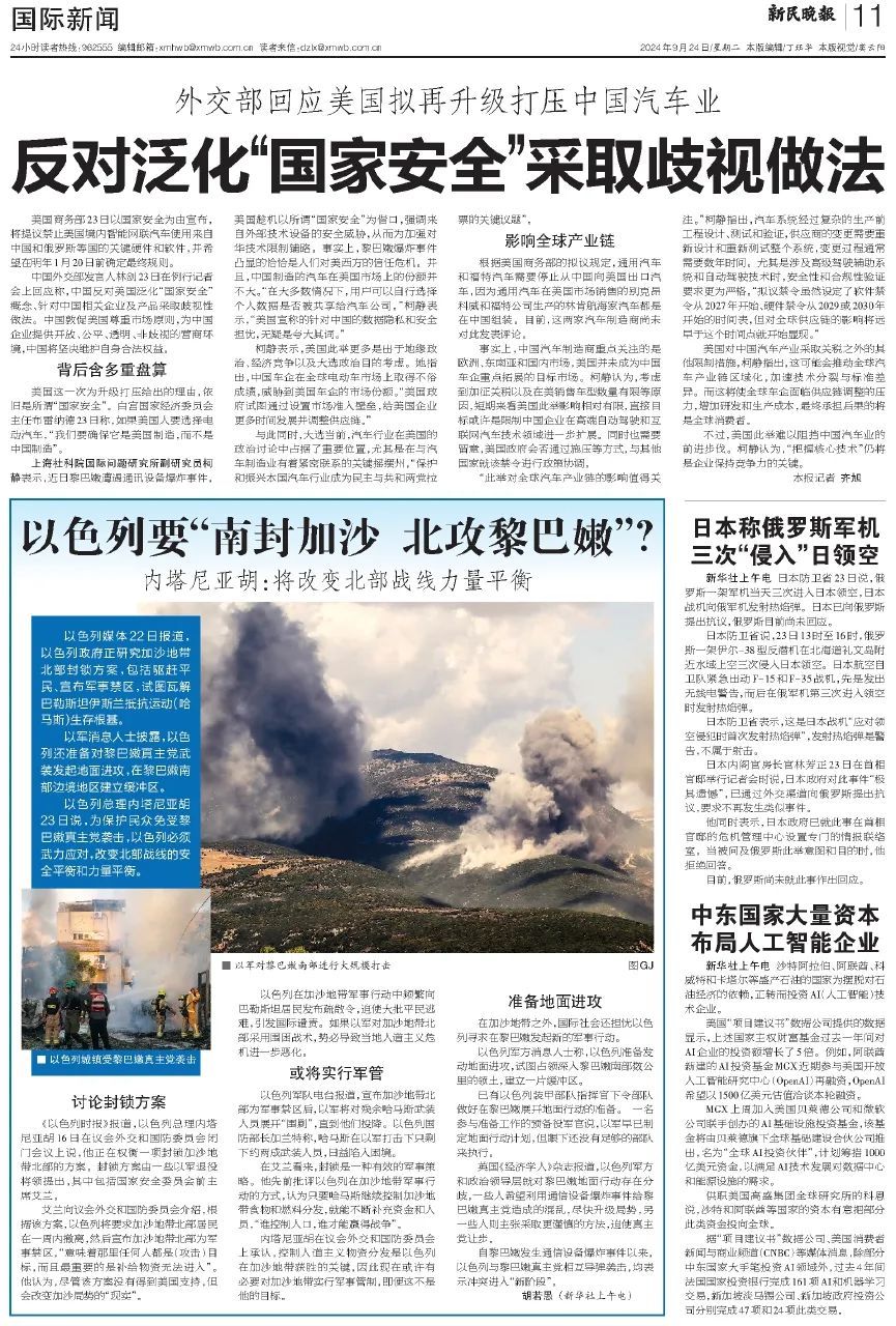 本文刊载于2024年9月24日《新民晚报》第11版:国际新闻