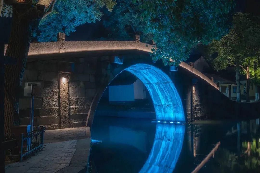 金泽古镇七座古桥,形成了宋、元、明、清四朝古桥一线牵的桥乡意境,通过灯光空间提升,充分挖掘每座桥梁所承载的不同寓意与功能,尽显灯影交织下的绚丽多姿,形成丰富的视觉印象,彰显千年古镇的文化和历史韵味。