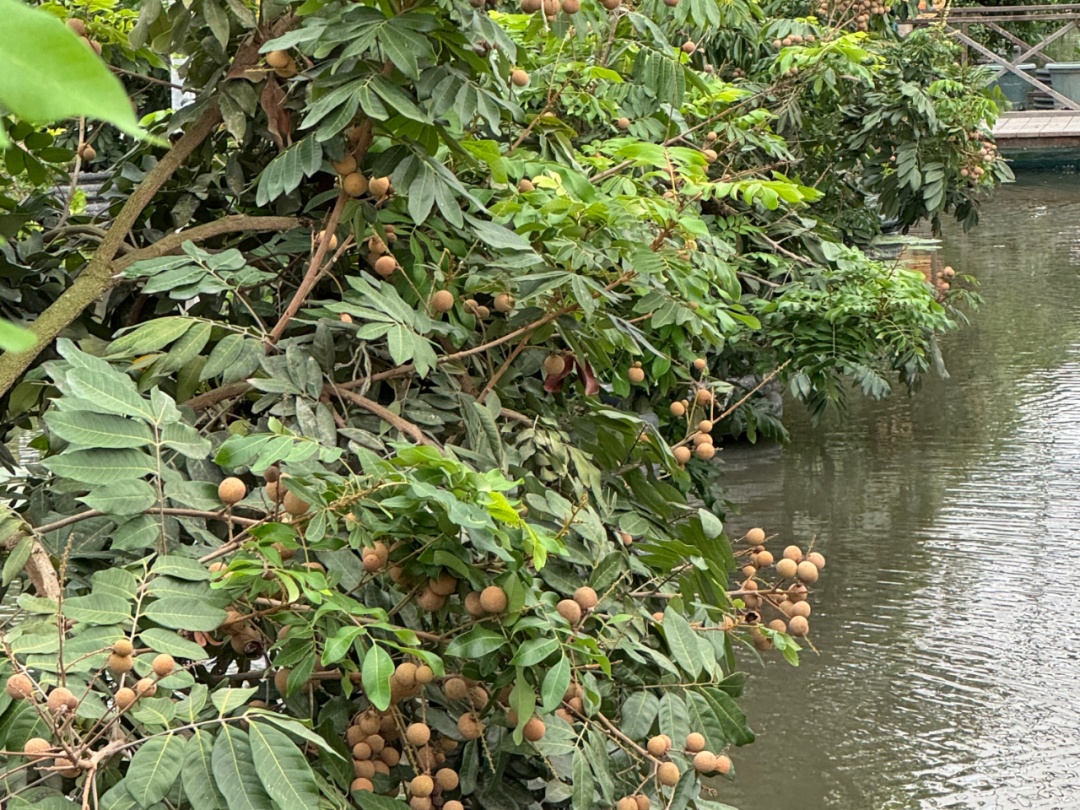 游客小琪划着桨板靠近种在水里波纹竖管中的龙眼树,体验水上采摘的乐趣。“秋天我最喜欢吃龙眼,因为它能让我想起来小时候家人聚在一起团团圆圆吃龙眼的时刻。”