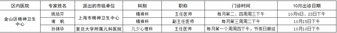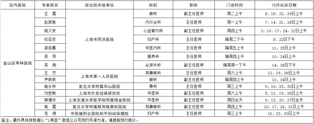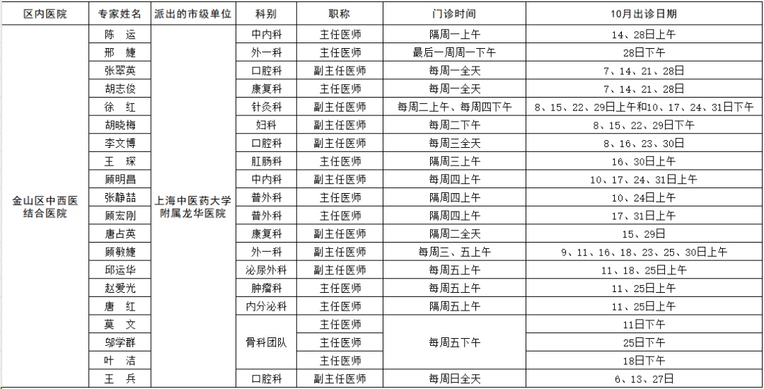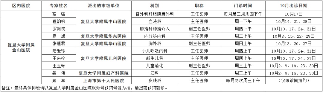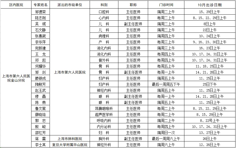 市级专家在金山的10月份出诊表出来了!阅读后收藏,接下来一个月的在金市级专家信息轻松掌握!