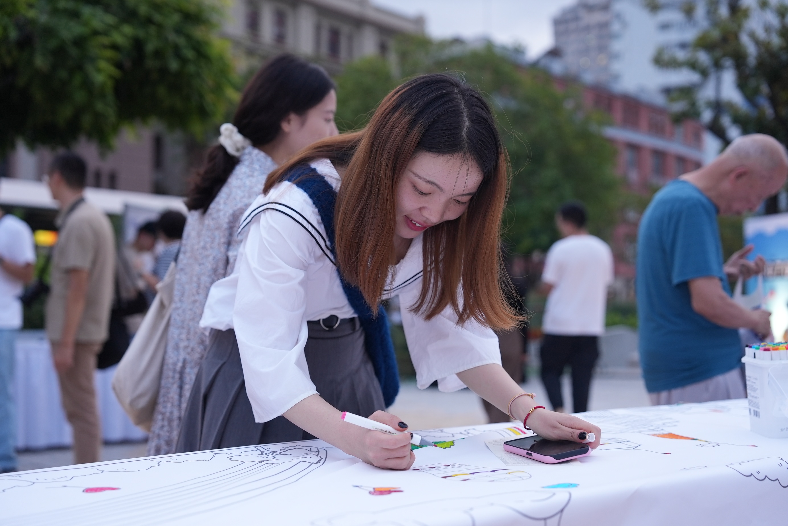 在彩绘外滩摊位上,大家更是发挥无限创意,以外滩天际线为背景,在空白涂鸦画布上自由挥洒,为外滩添上了五彩斑斓的色彩和图案。