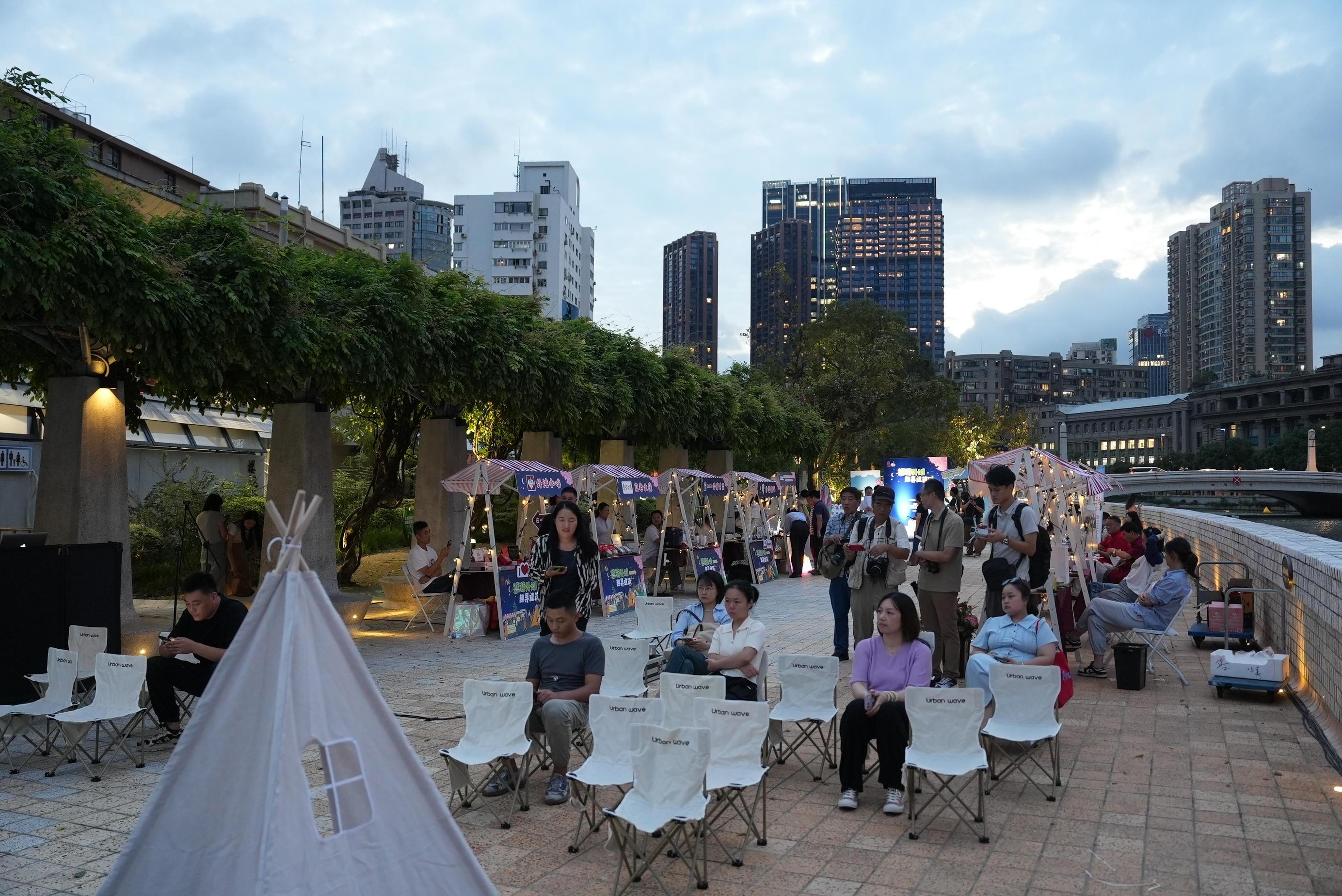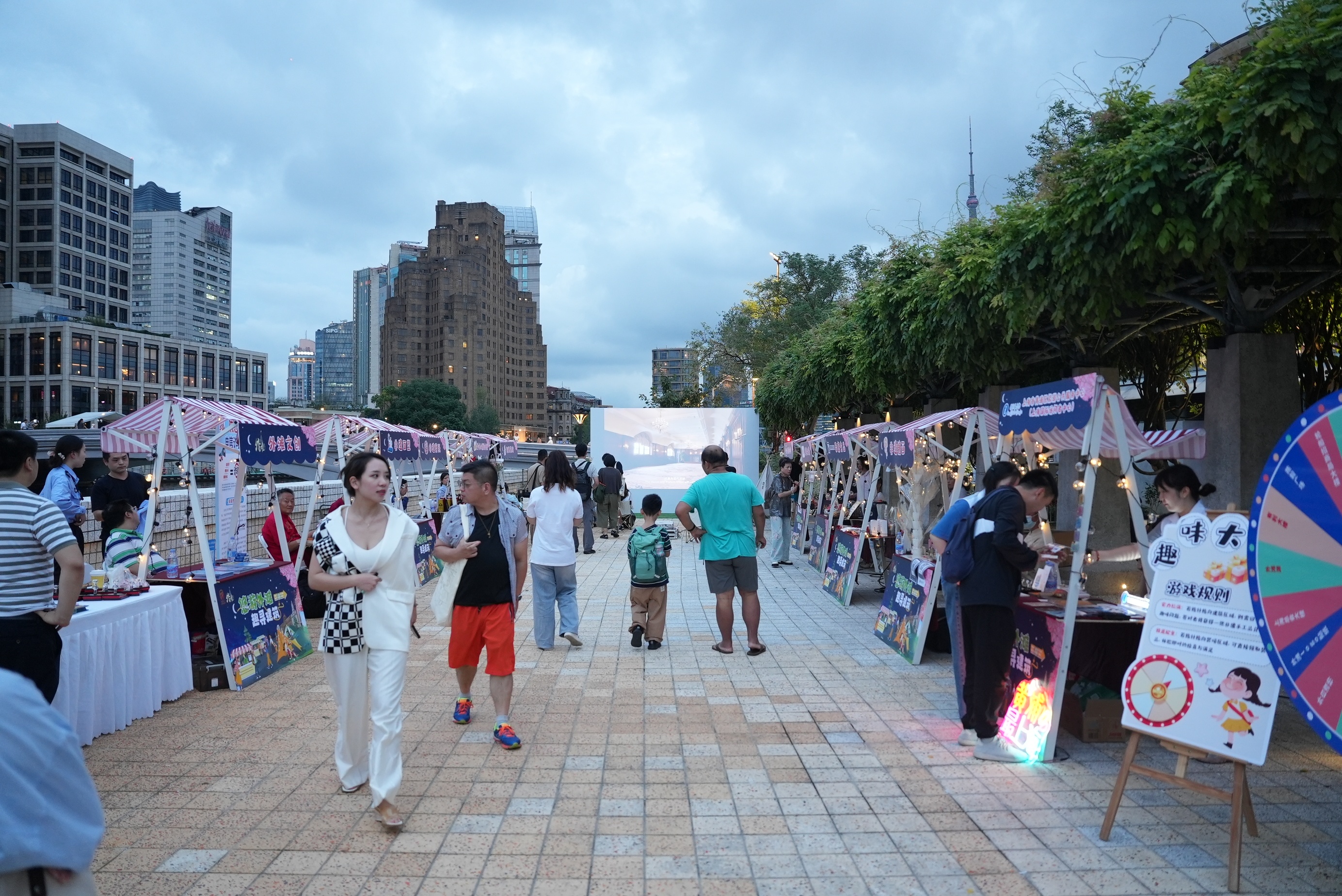 “走啊,逛夜市去!”在初秋的晚风中,市民游客们三三两两,结伴同行,体验露天电影、非遗手工品、趣味游戏……9月26日晚,外滩街道在苏州河畔的樱花谷驿站开展了一场“悠游外滩·趣寻建筑”集市活动,十多个摊位铺开,不少上班族、居民、游客来集市逛吃玩乐,享受初秋的夜晚。