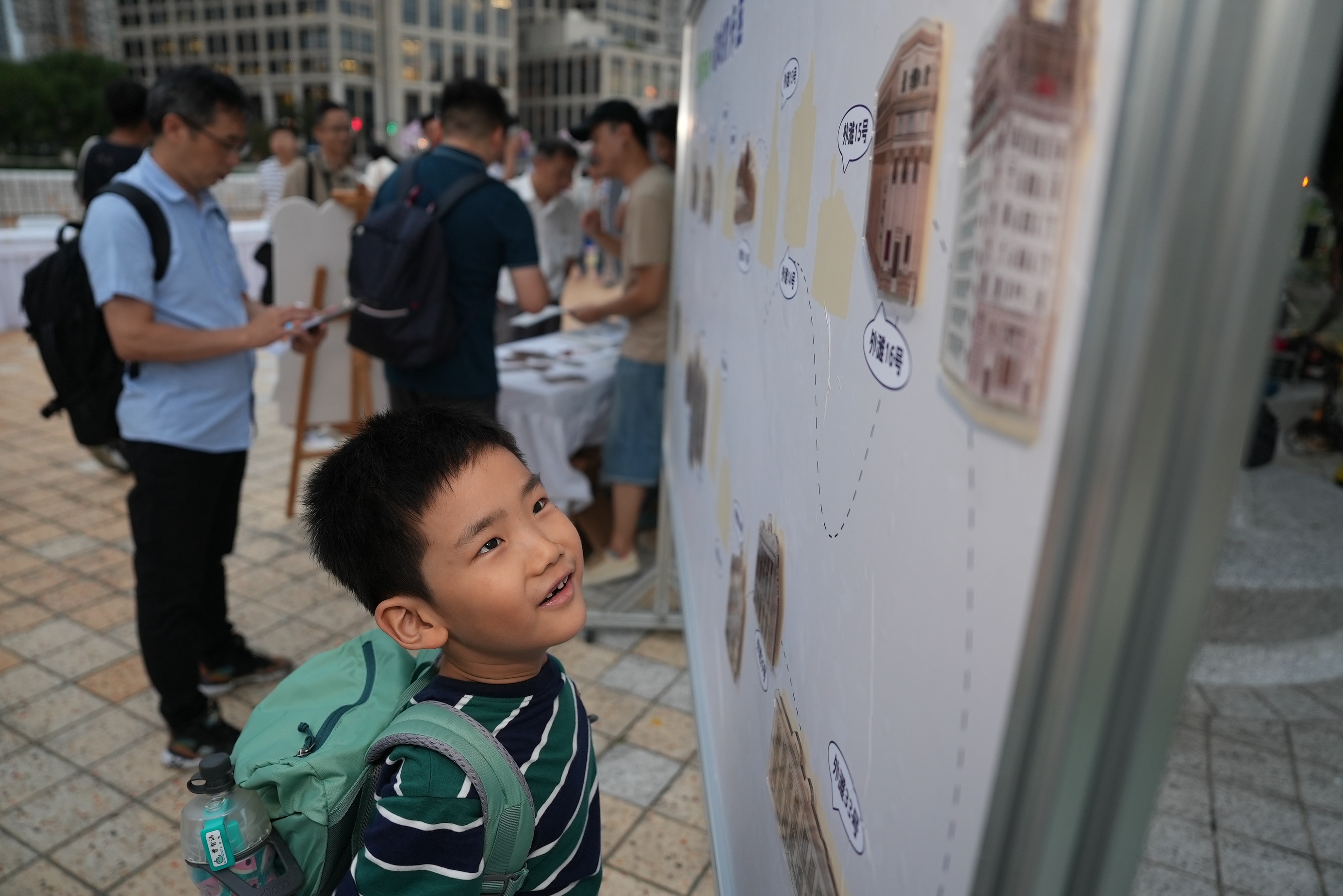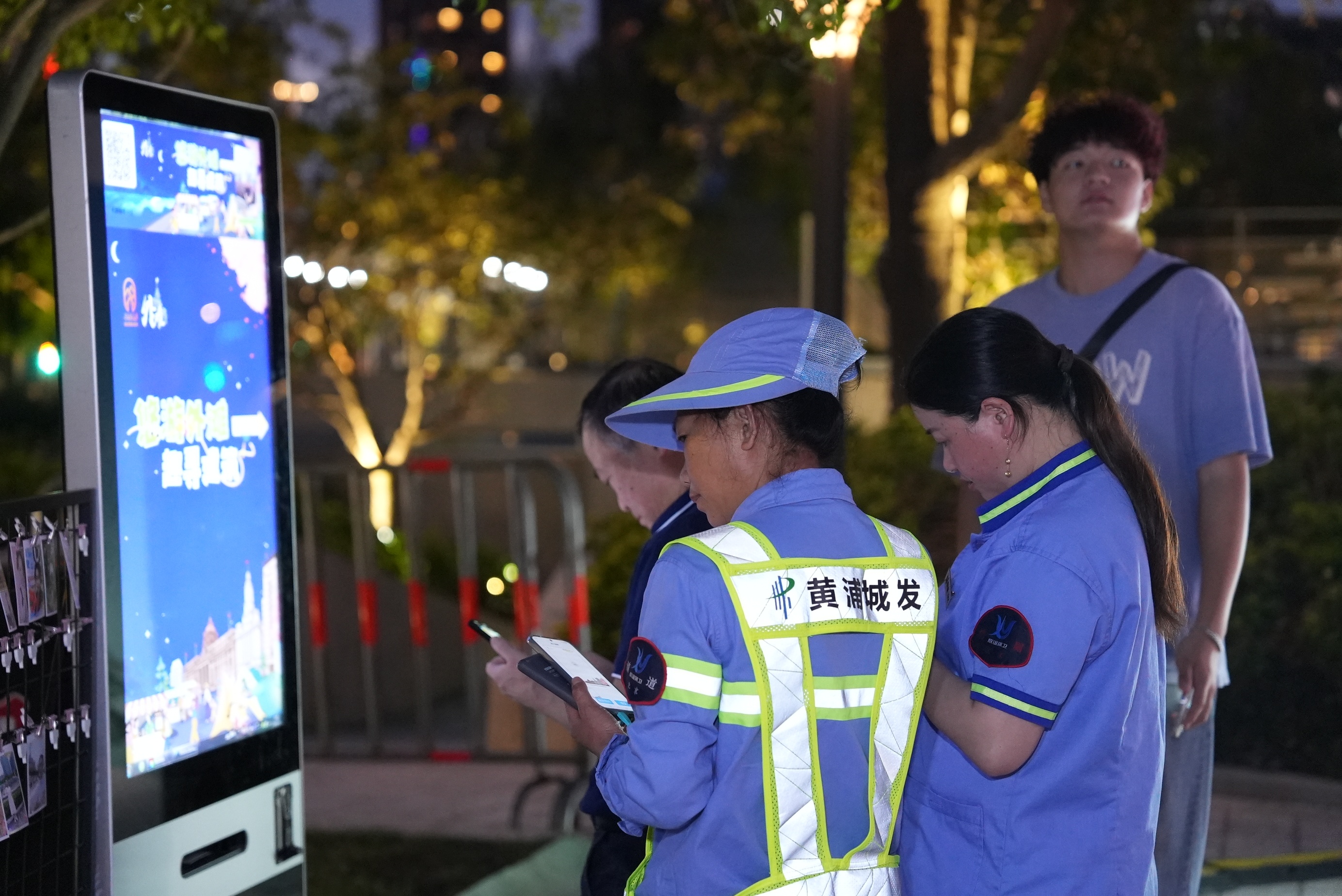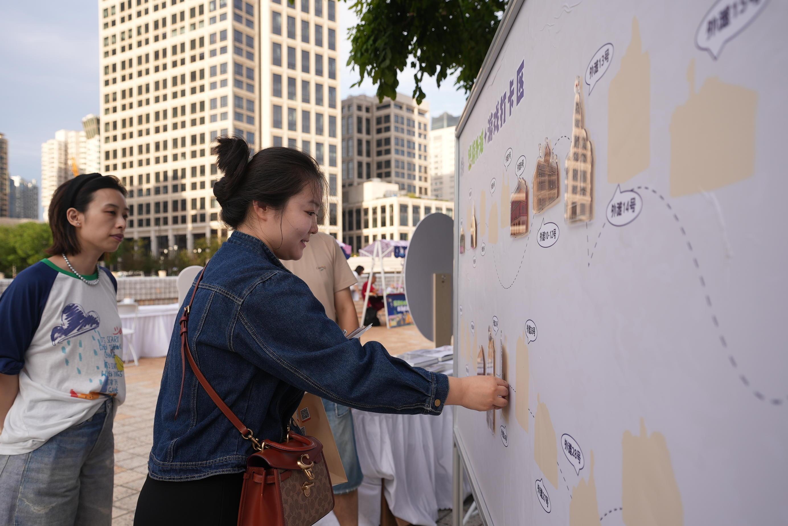 你熟悉外滩建筑吗?在游戏打卡区,趣味大转盘上罗列着外滩众多经典建筑的名称,每当游客转动转盘并指向某个建筑时,便需回答与该建筑相关的趣味问题,不仅能获得非遗手工品兑换券,还有机会获得外滩特色的文创产品,从而进一步感受外滩文化的独特魅力。此外,建筑排序大挑战也备受市民游客喜爱。参与者需根据自己对外滩第一立面建筑群的了解,对建筑群进行正确排序,在互动中加深了对外滩建筑群顺序的记忆,收获宝贵的知识。