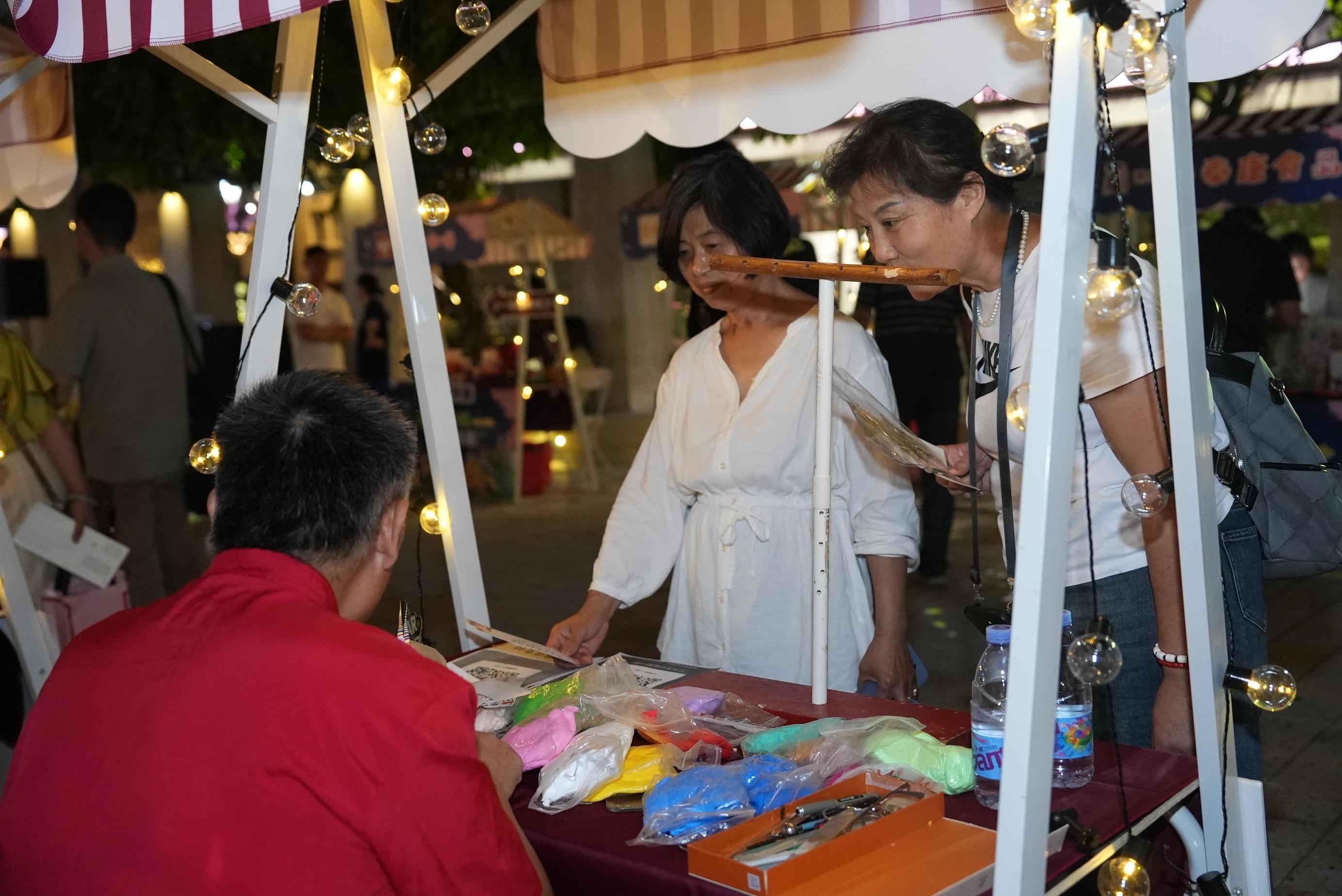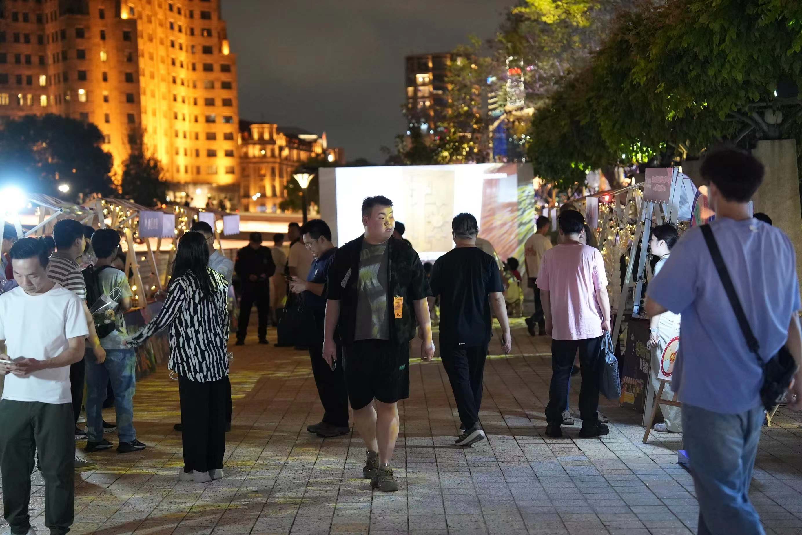 在这个乐趣与温情并存的集市里,市民游客们闲逛于各个摊位间,捕捉到外滩生活的美好,在有声、有色、有形的体验中,勾勒出一幅幅生动的夜生活画卷。