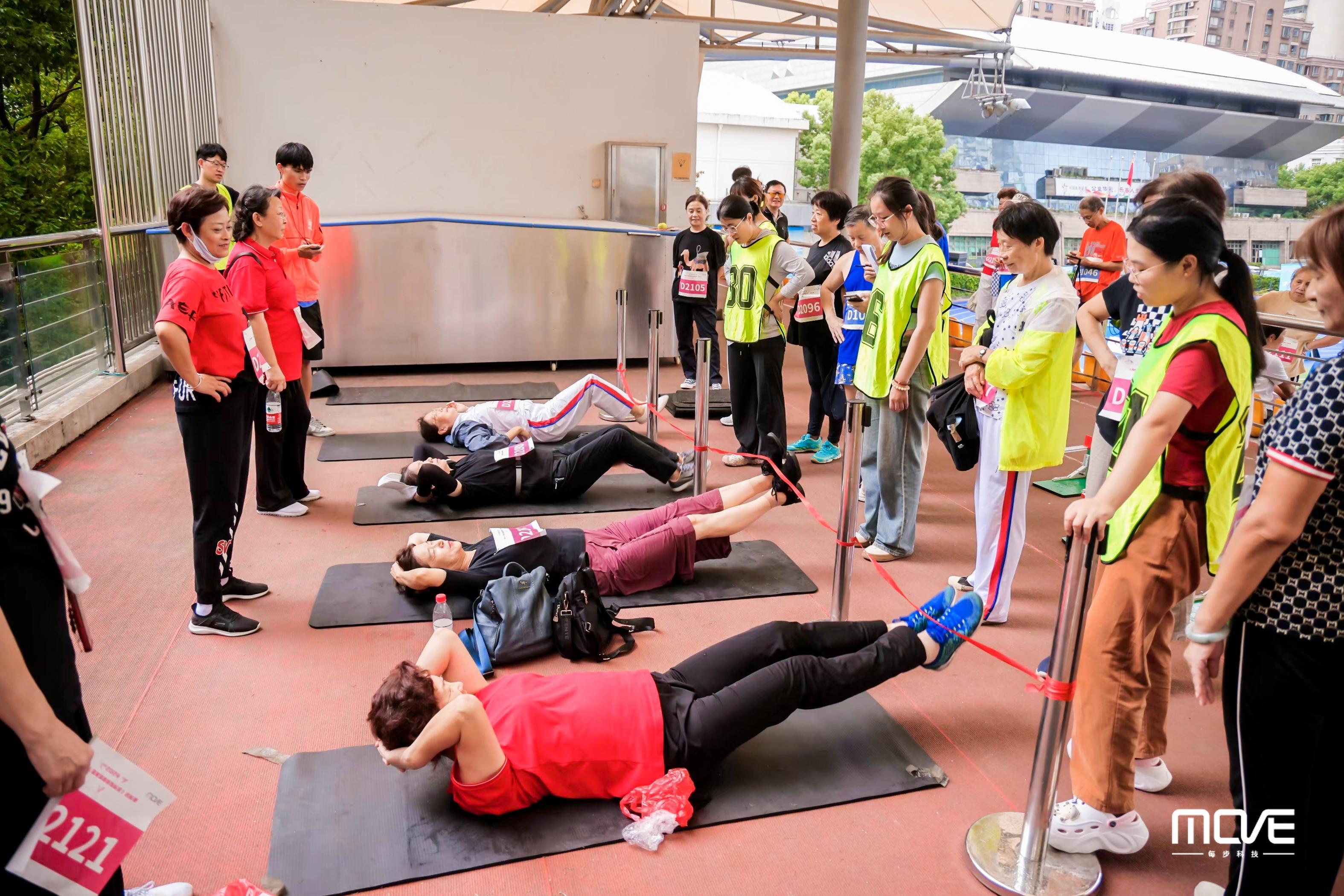 比赛现场气氛热烈,来自黄浦区的选手们按照年龄分为青年组、壮年一组、壮年二组和老年组4个组别。选手们在跳绳、绕杆跑、仰卧举腿等等多个具有针对性的测试项目中展开激烈角逐,全面测试力量、柔韧、速度、灵敏和耐力五项身体素质。