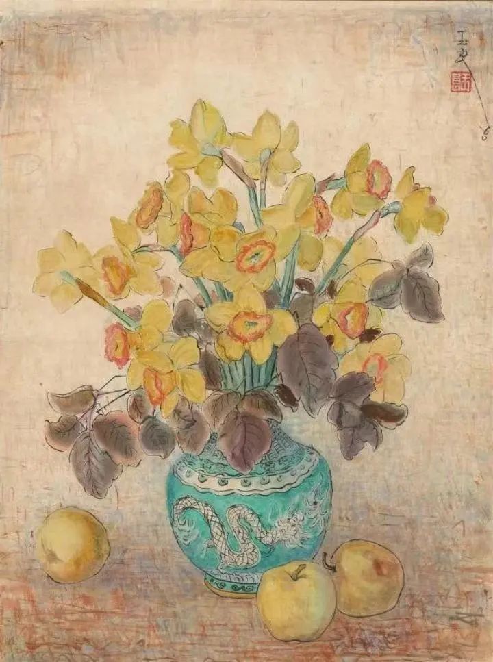 右:潘玉良《花果》彩墨画 刘海粟美术馆展,中华艺术宫藏