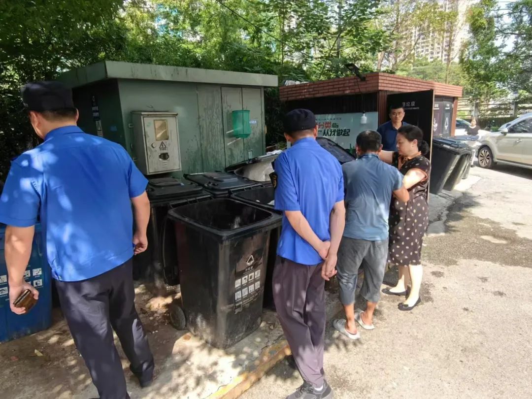 实地检查后,联勤联动队伍与相关居民区和物业公司召开座谈会,交流工作经验,优化管理机制,通过“边宣传、边检查、边整改”的工作模式,进一步提高各小区和物业公司对于垃圾分类工作的重视度和参与度。