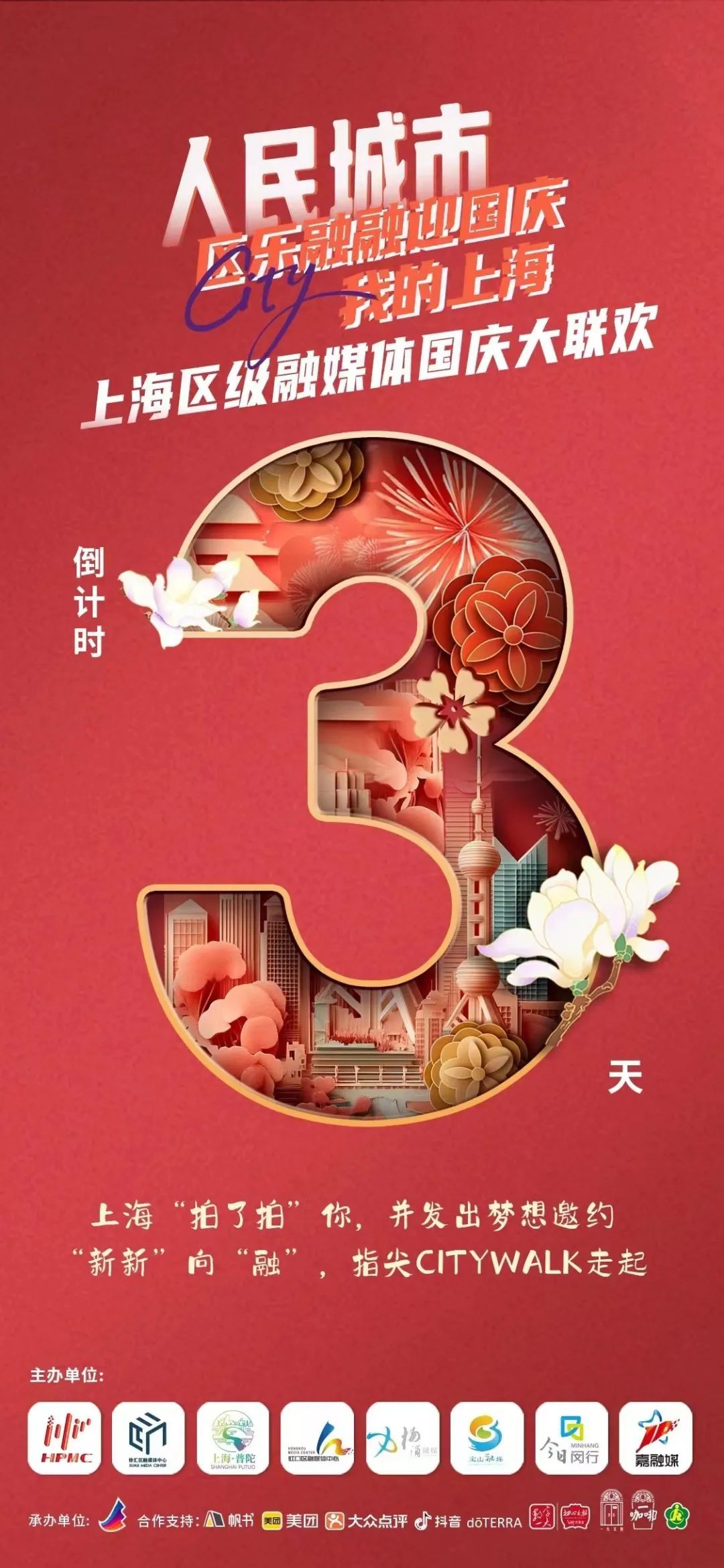 倒计时3️⃣天!东方网携手上海各区推出国庆大联欢活动,7天7大主题,解码人民城市的上海样本,演绎海派文化的多元魅力,期待与大家相聚云端,用最city的方式,发出AI上海的深情告白,敬请期待!
