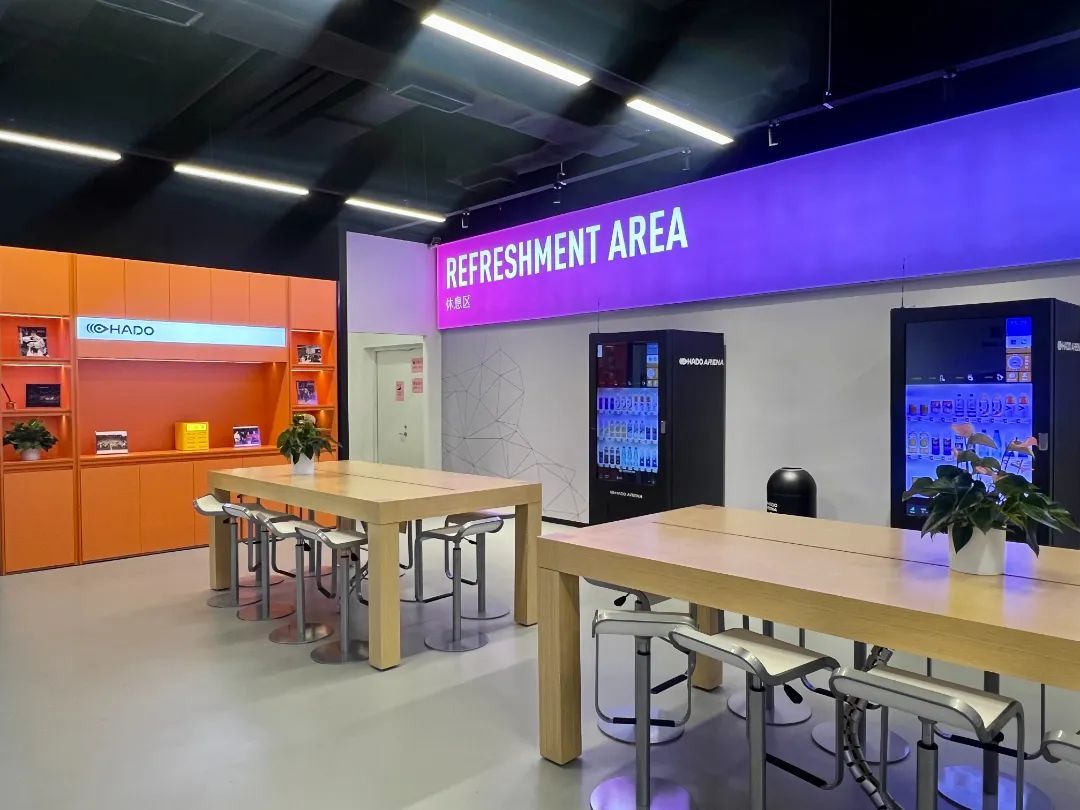 明亮开放的入口处设有休息区及HADO周边售卖区。更衣室设施齐全,并提供运动鞋服租赁服务。