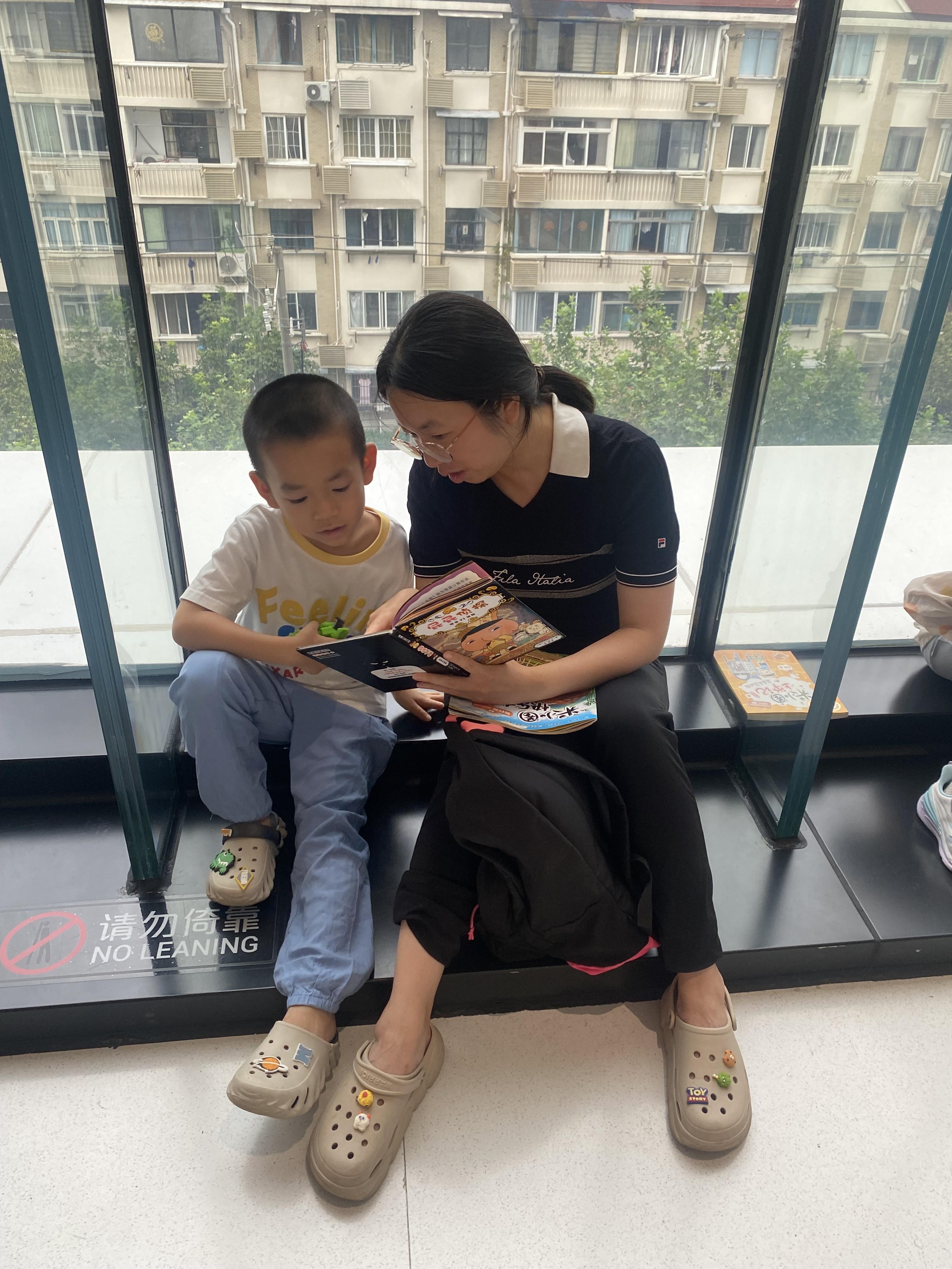 每一层楼面,每一个转角都有爱书人的踪影。妈妈捧着绘本给活泼好动的孩子讲述着书上的故事。