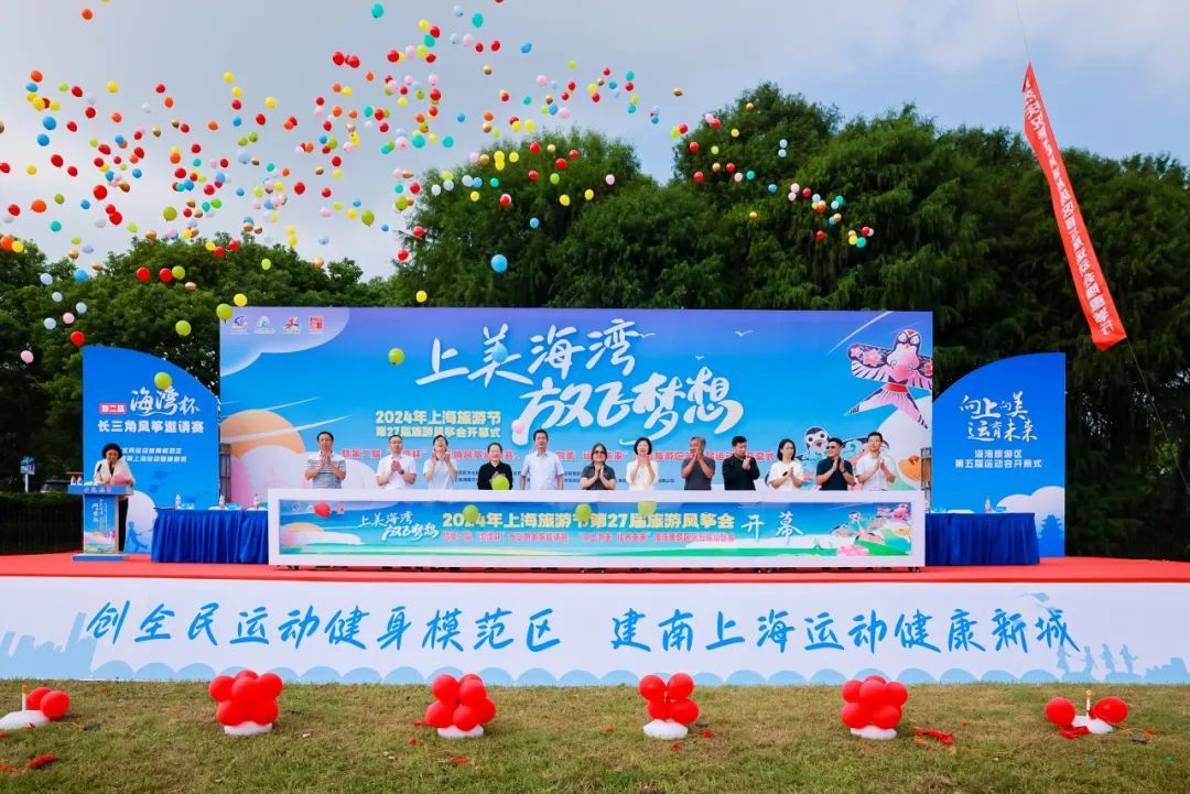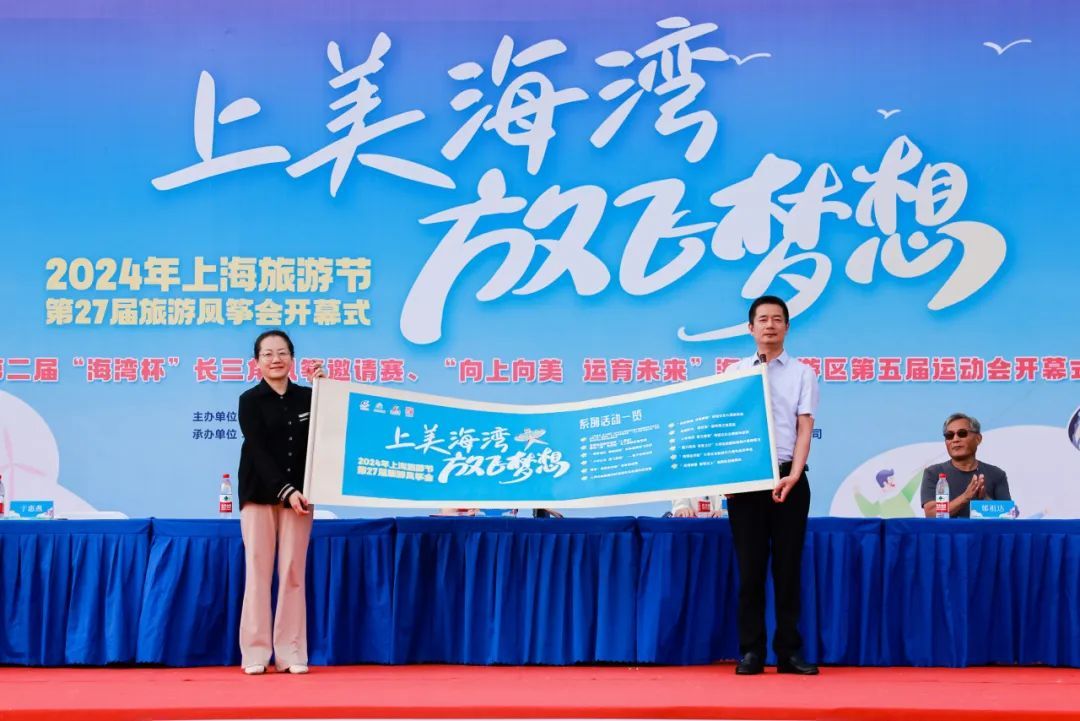 出席领导共同启动“上美海湾 放飞梦想”2024 年上海旅游节第 27 届旅游风筝会暨第二届“海湾杯”长三角风筝邀请赛、“向上向美 运育未来”海湾旅游区第五届运动会。