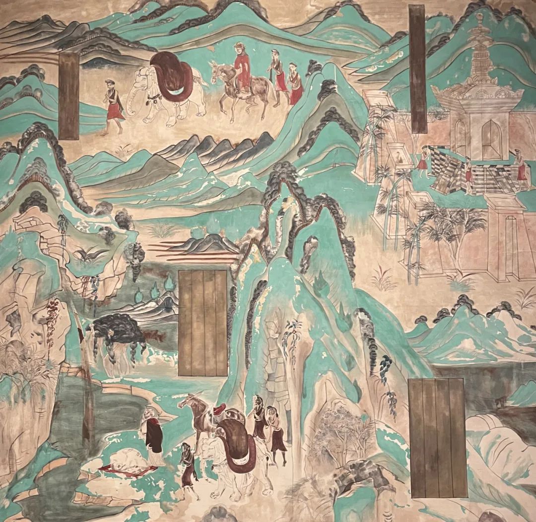 漫步在古老的丝绸之路上,仿佛是一场穿越时光的奇妙冒险。千百年来,这条交织着东方和西方文明的古道,见证了无数文化的碰撞与交流。在敦煌的壁画中,也有许多描绘自然风光的优美画卷,我们能看到有敦煌韵味的连绵的山脉,色彩绚丽。