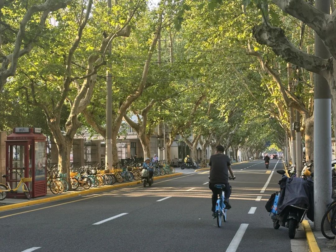 上午十点,申城天空晴朗,阳光透过梧桐树的枝叶洒在地面上,显得格外柔和。尽管申城尚未迎来气象意义上的秋天,但近日的天气正在渐入秋高气爽。