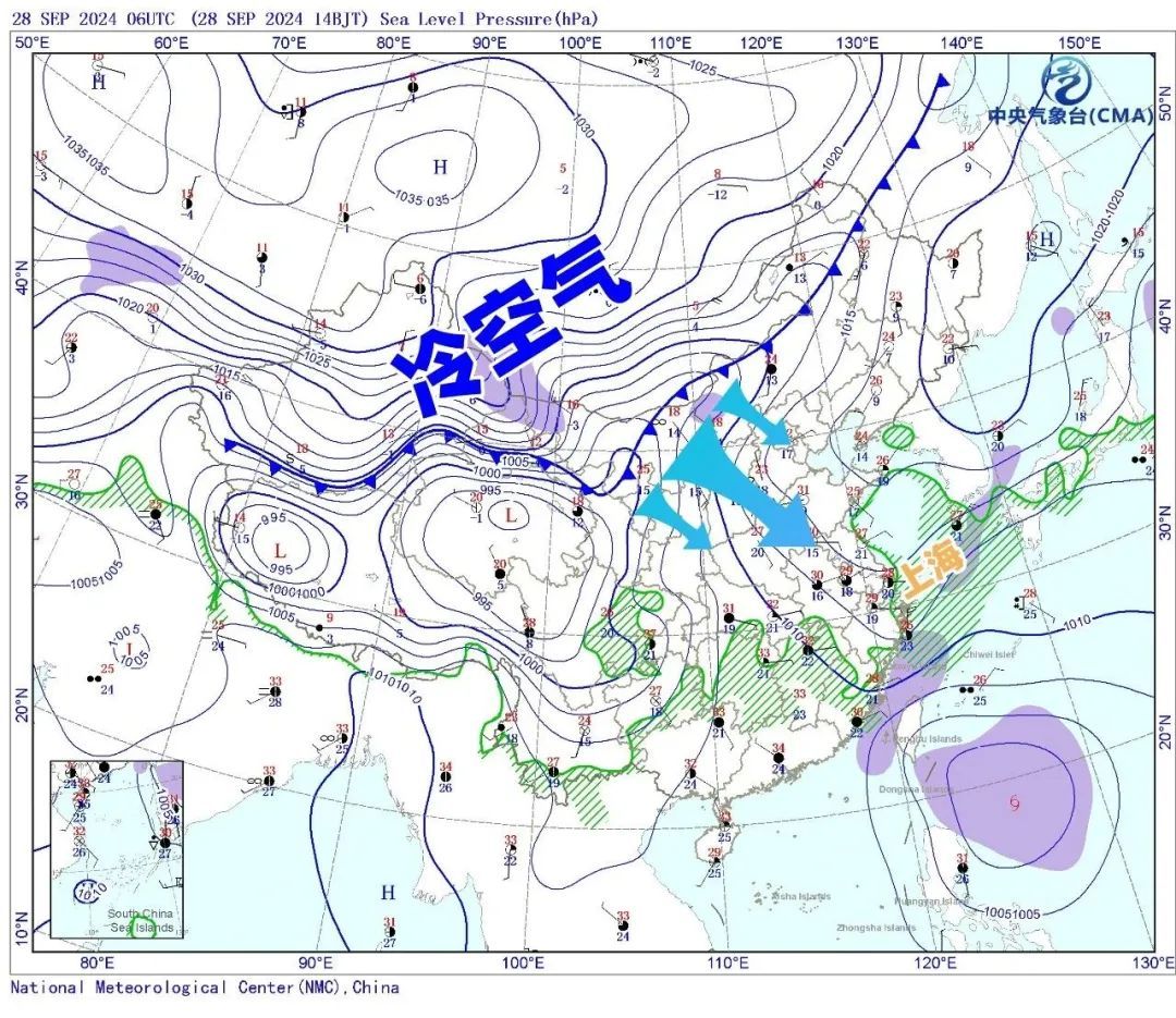 上海中心气象台预计,冷空气将于10月1日前后开始影响申城,届时冷暖气流交汇,将为申城带来降水过程。10月1日—3日气温明显下降,48小时最高温度降幅可达6~8度,2日—3日最高气温降至23℃,最低气温可能跌到19℃左右,外出游玩可能需要加件外套。3日—5日天空状况转好,天气以多云为主,6日—7日局部有短时阵雨,建议备好雨具出行无忧。
