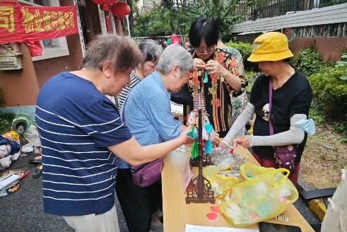 新增的“香包”摊位更是吸引了众多居民的目光,一串串精致灵巧的小香包让人爱不释手,居民们纷纷排队领取。此外,小家电、皮具维修等摊位前也是人头攒动,热闹非凡,极大地提升了居民的参与热情。