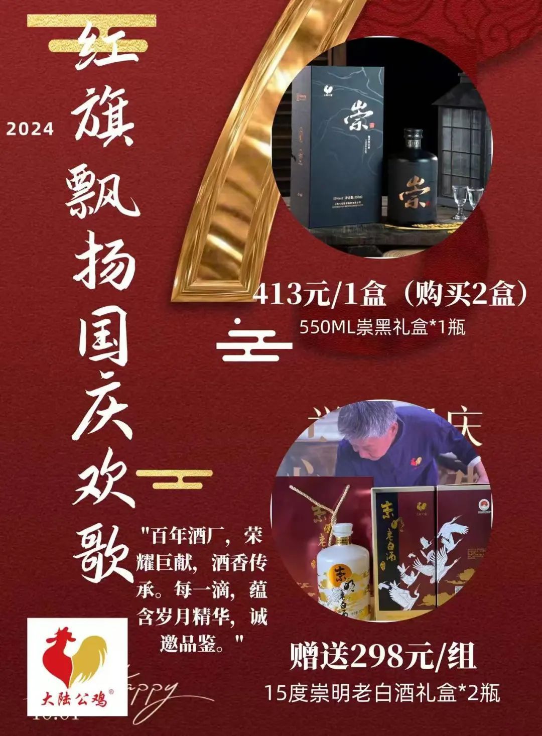3.购53度崇黑白酒一组(2瓶)送新品15度550老白酒一组(2组)。