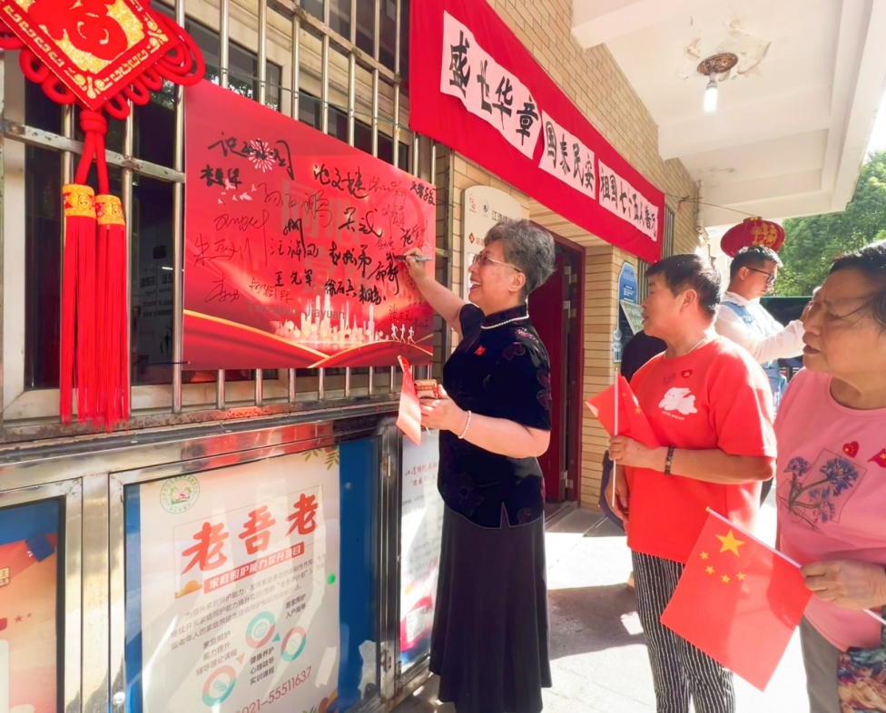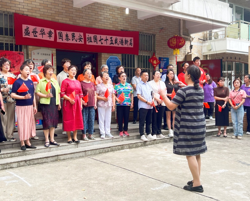 笑声、歌声、欢笑声……9月29日一早,韶嘉二居民区党群服务站门口国旗飘飘、热闹非凡。
