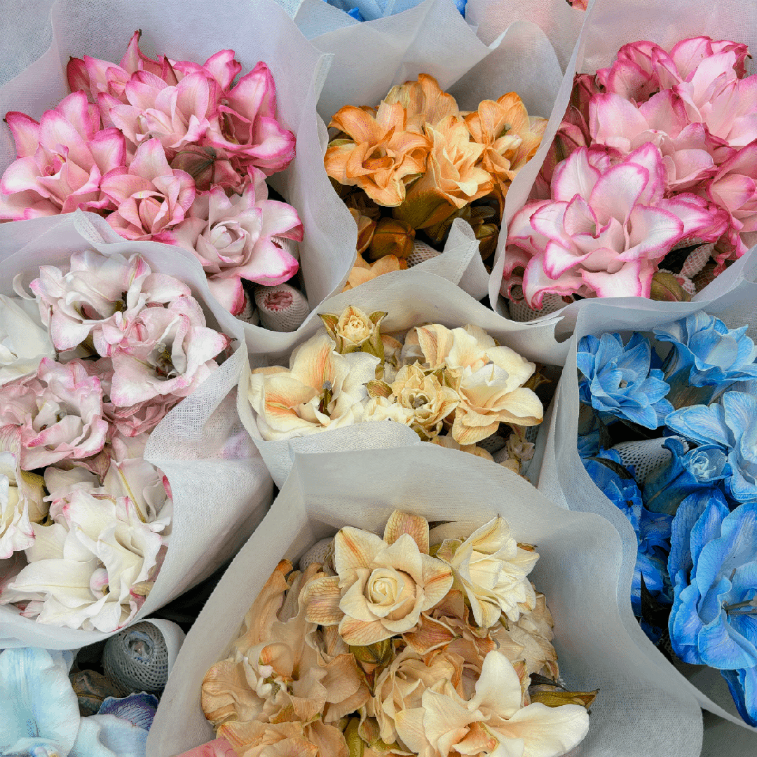 酒店插花的针垫、日常制作干花的酸浆果,上海宋宇鲜花门店已有20余年历史,起初是做玫瑰起家的,现在既有来自南非、日本、哥伦比亚、荷兰等国家的进口鲜花,又有各式各样的国产鲜花。