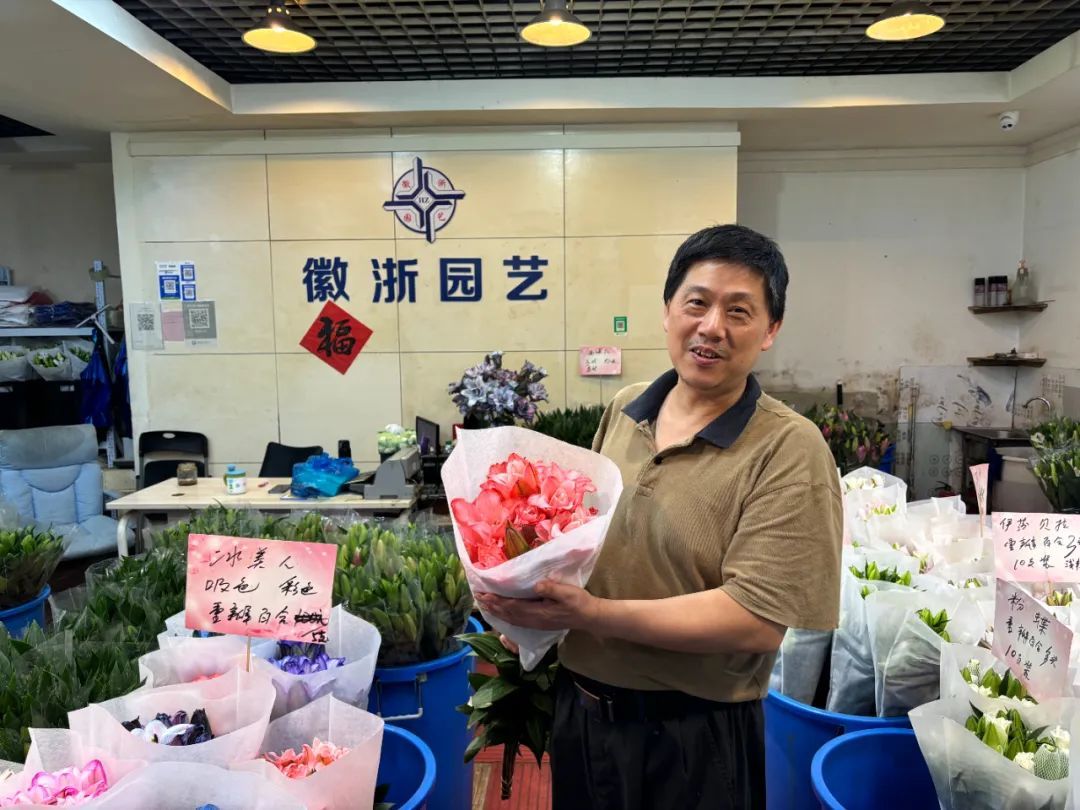 “老板人好、鲜花品质好,我本身也是开鲜花店的,这次过来进点货。”刚刚买好鲜花的老顾客说。