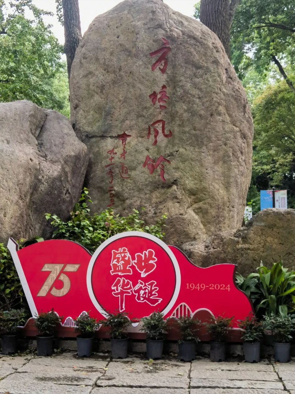 下午2时,记者在上海方塔园北门看到已悬挂起国旗,公园内,主干道旁的草坪布置了国庆特供花卉,包含了大仓桥、云间第一楼、方塔等本土地标元素。“公园的装置一直在变化,很有新鲜感,国庆节的布置挺喜庆的。”市民王女士告诉记者。
