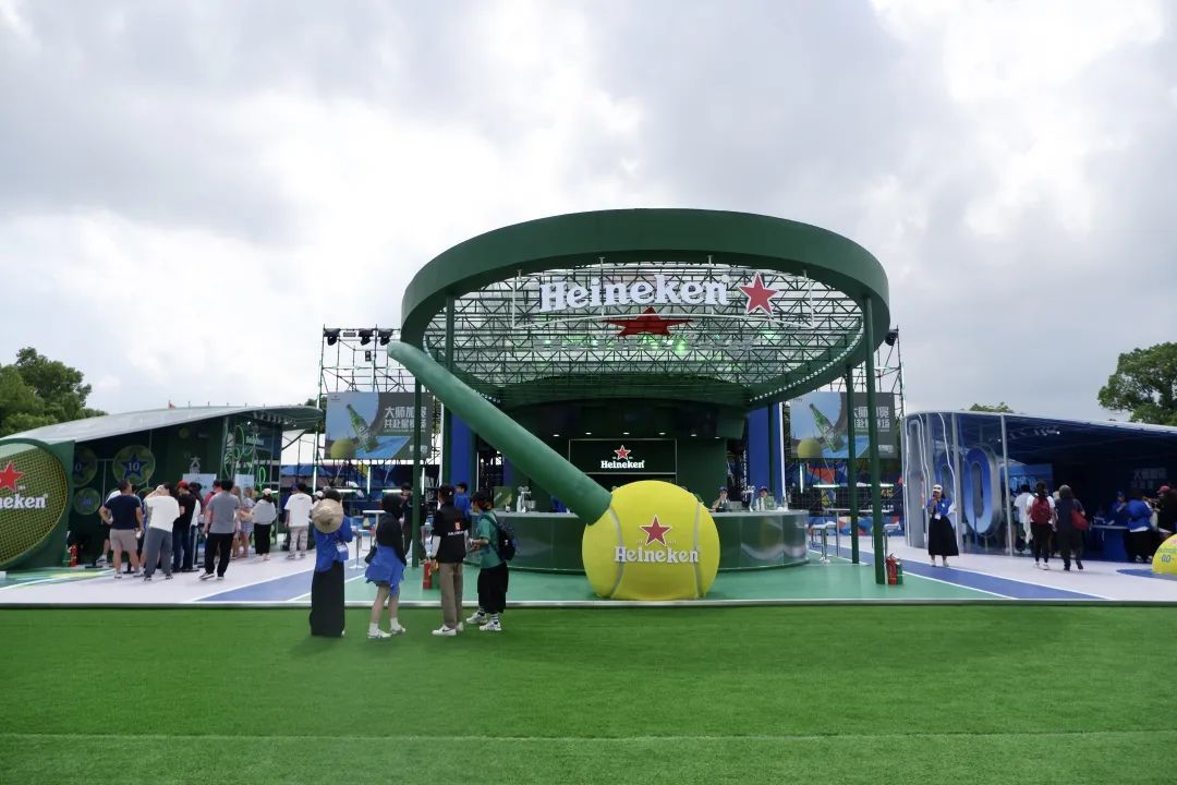 在喜力啤酒展台,球迷们在迷你网球场上开启一场击球小游戏,将球击到不同的积分区,可以解锁精美礼品;或是来一次“AI拍照”,只需拍摄人像照片,就能“赛博”穿梭于球场,过一把身临其境的网球瘾。