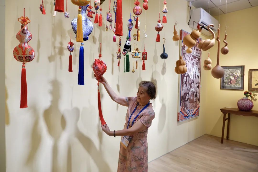 走进馆内,一缕清幽香气徐徐迎入鼻尖,数十个造型各异的香囊悬挂其间,睡莲香囊、桃心香囊、敦煌壁画香囊、龙年定制的“小青龙”香囊……精致悦目的香囊串起了无限的风雅。