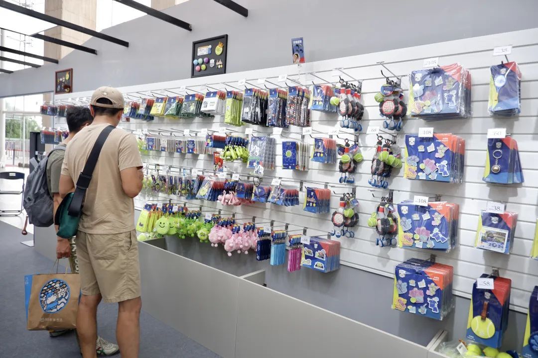 如果你对这些网球“小文创”感兴趣,不妨去赛会官方纪念品商店里逛一圈。从冰箱贴到可爱的“网球”玩偶,从主题浴巾到马克水杯,琳琅满目的创意文创,市民们可以自行挑选。