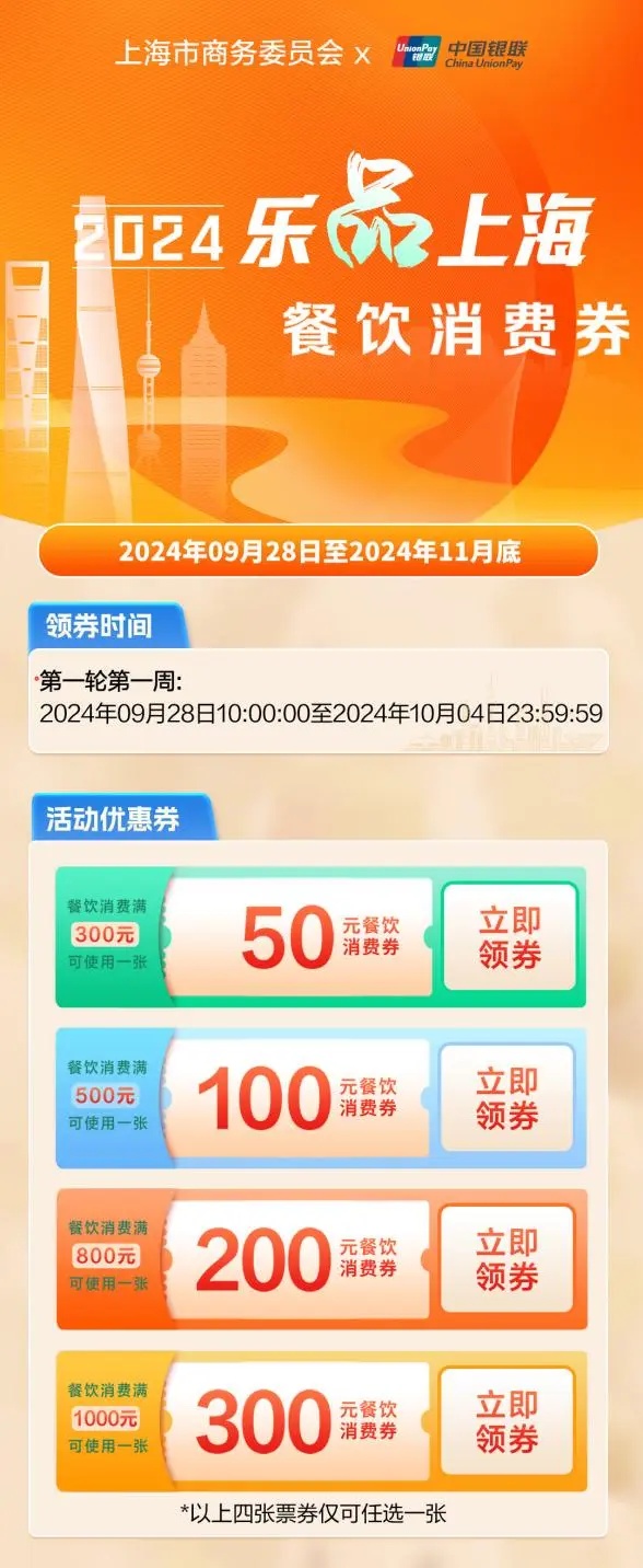 消费券采用“2+1+1”模式发放,餐饮和住宿券通过三家支付平台,电影券通过猫眼、淘票票,体育券则通过“来沪动丨健身地图”小程序发放,均为“先到先得”。餐饮、住宿、体育券自发放日起7天内有效,电影券领取后24小时内有效。