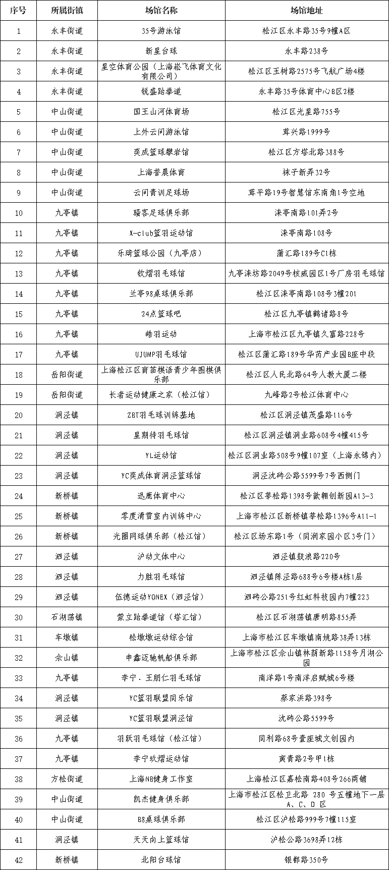 体育券消费场馆名单↓