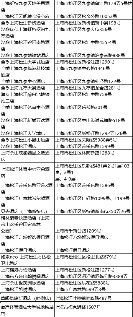住宿券消费商家名单↓