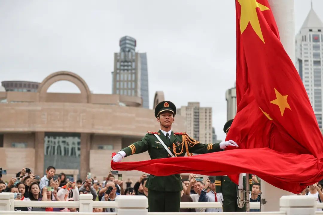 2024年10月1日,中华人民共和国迎来75周年华诞。在这个举国同庆的日子里,上海人民广场再次成为爱国情怀汇聚的海洋,无数市民自发聚集,只为见证那庄严而神圣的一刻——五星红旗在晨光中冉冉升起,共同为祖国母亲献上最诚挚的祝福。